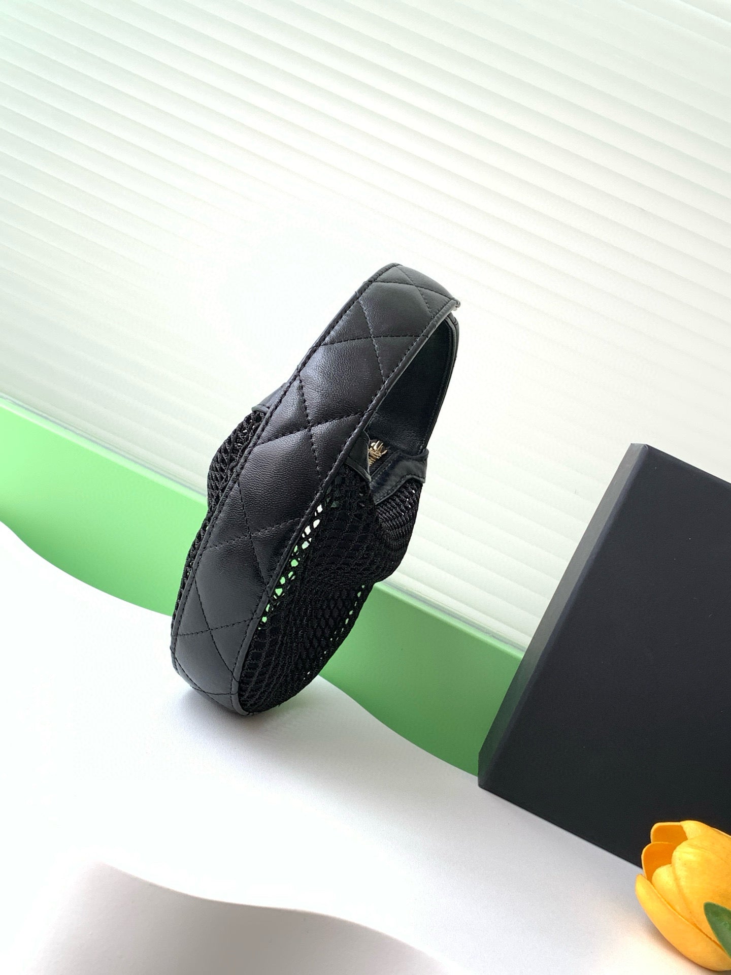 CC 25S POUCH IN BLACK LAMBSKIN WITH MESH GOLD HARDWARE