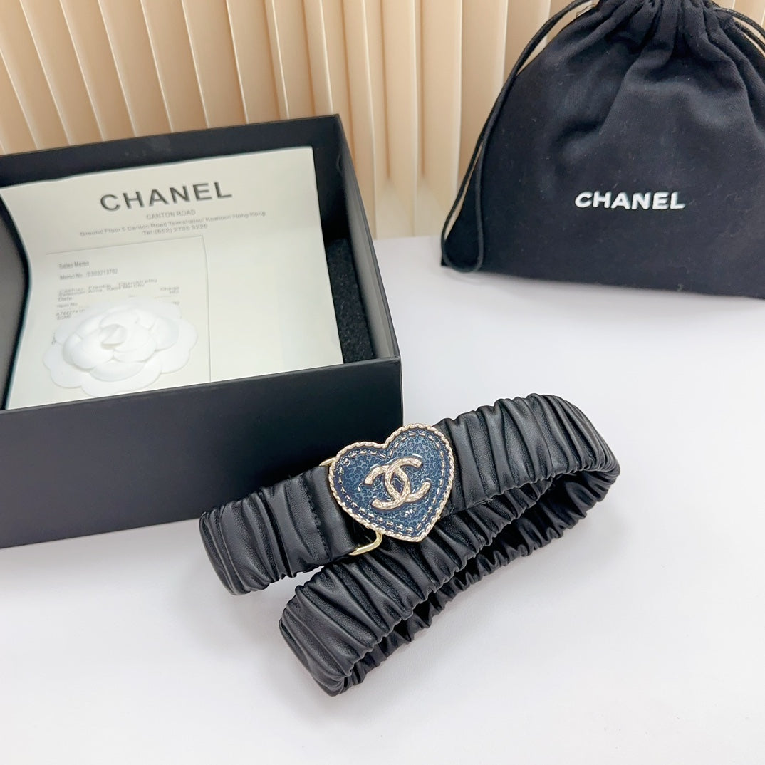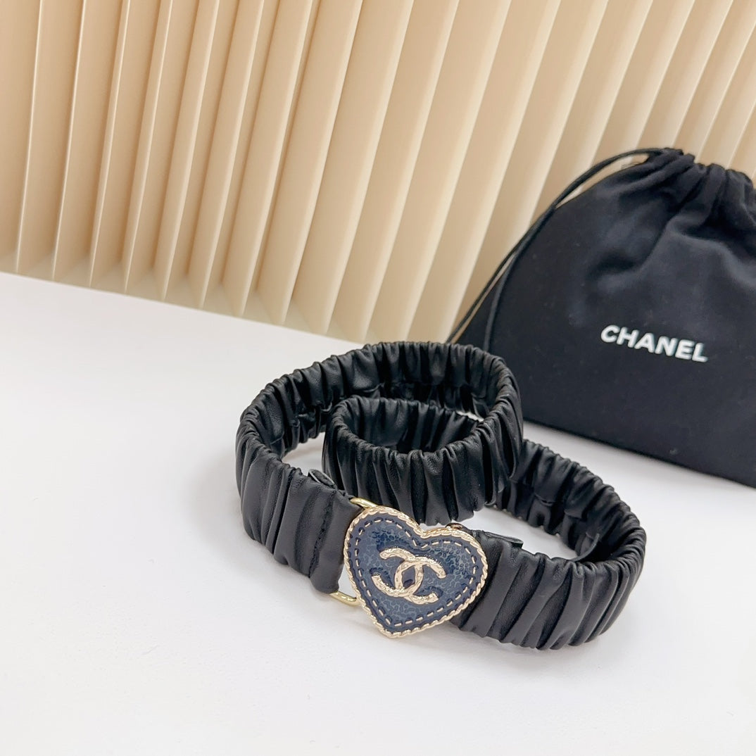 CC 30 MM ELASTIC BELT IN BLACK CALFSKIN GOLD HEART HARDWARE
