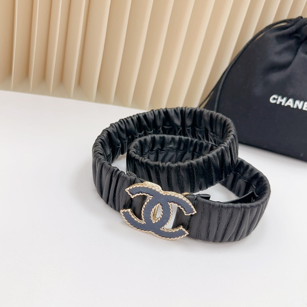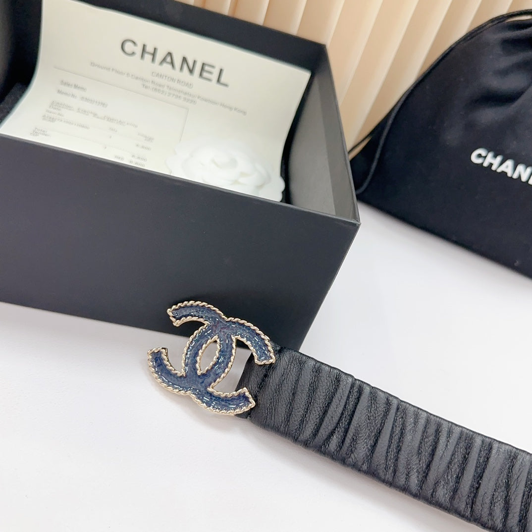 CC 30 MM ELASTIC BELT IN BLACK CALFSKIN GOLD MIX BLUE HARDWARE