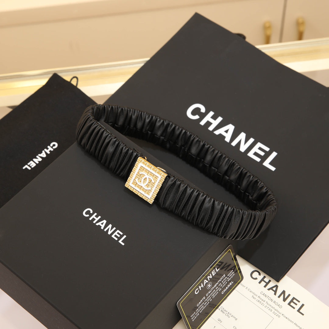 CC 30 MM SQUARE BUCKLE BELT IN BLACK CALFSKIN WITH GOLD HARDWARE