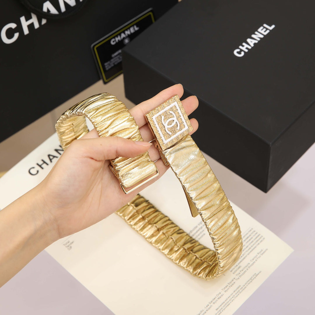 CC 30 MM SQUARE BUCKLE BELT IN GOLD CALFSKIN WITH GOLD HARDWARE