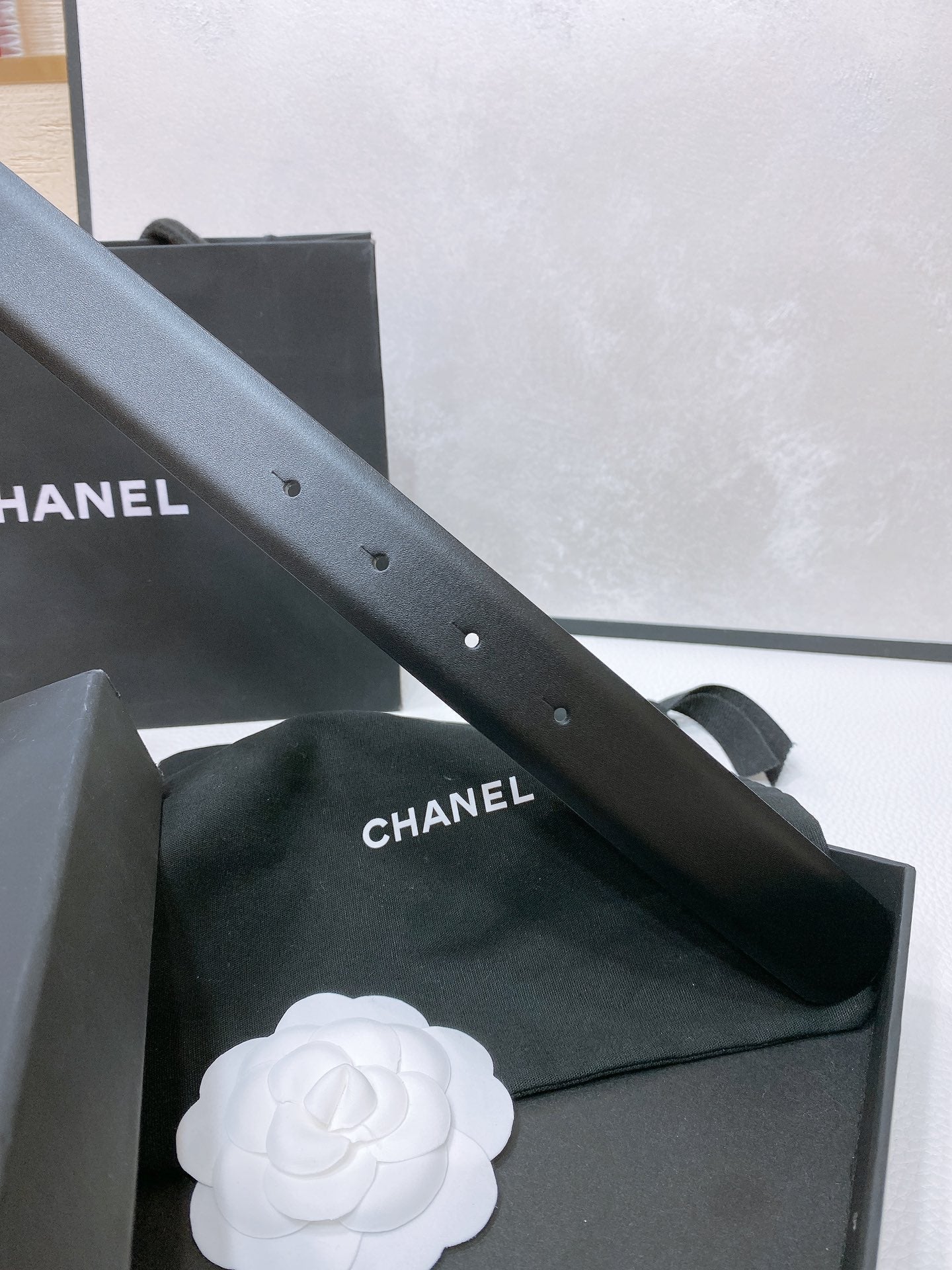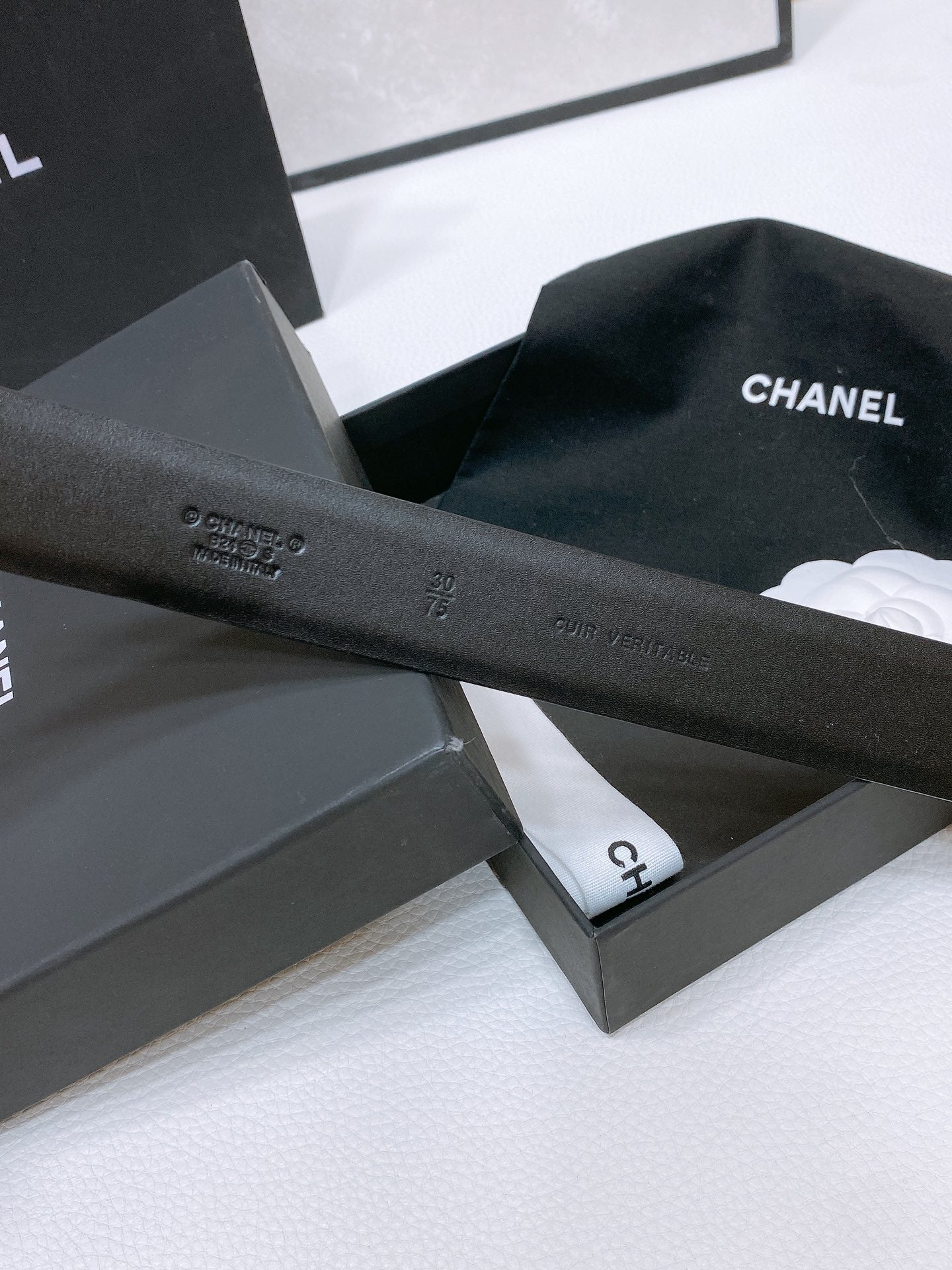 CC 30MM BELT IN BLACK SMOOTH CALFSKIN WHITE MIX BLACK METAL HARDWARE