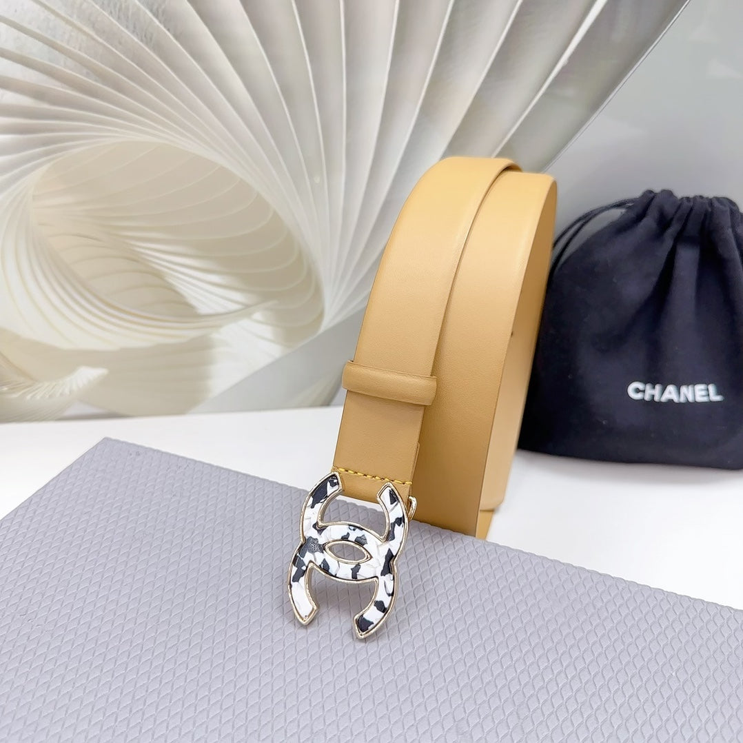 CC 30MM BELT IN GOLDENROD BROWN SHINNY CALFSKIN WHITE LOGO