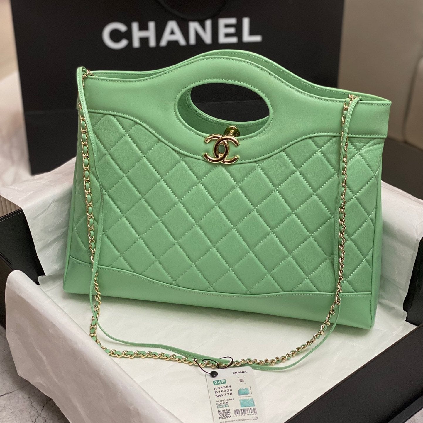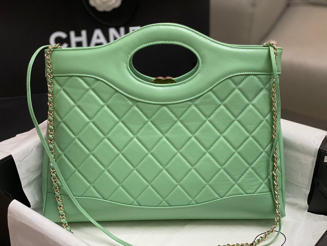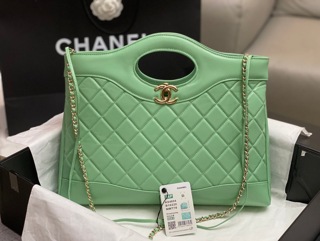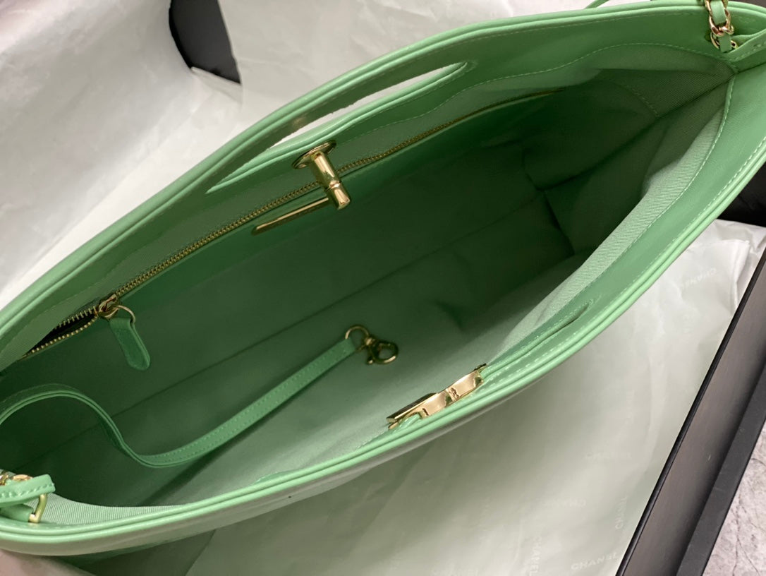 CC 39 LARGE SHOPPING BAG IN GREEN MINT CALFSKIN
