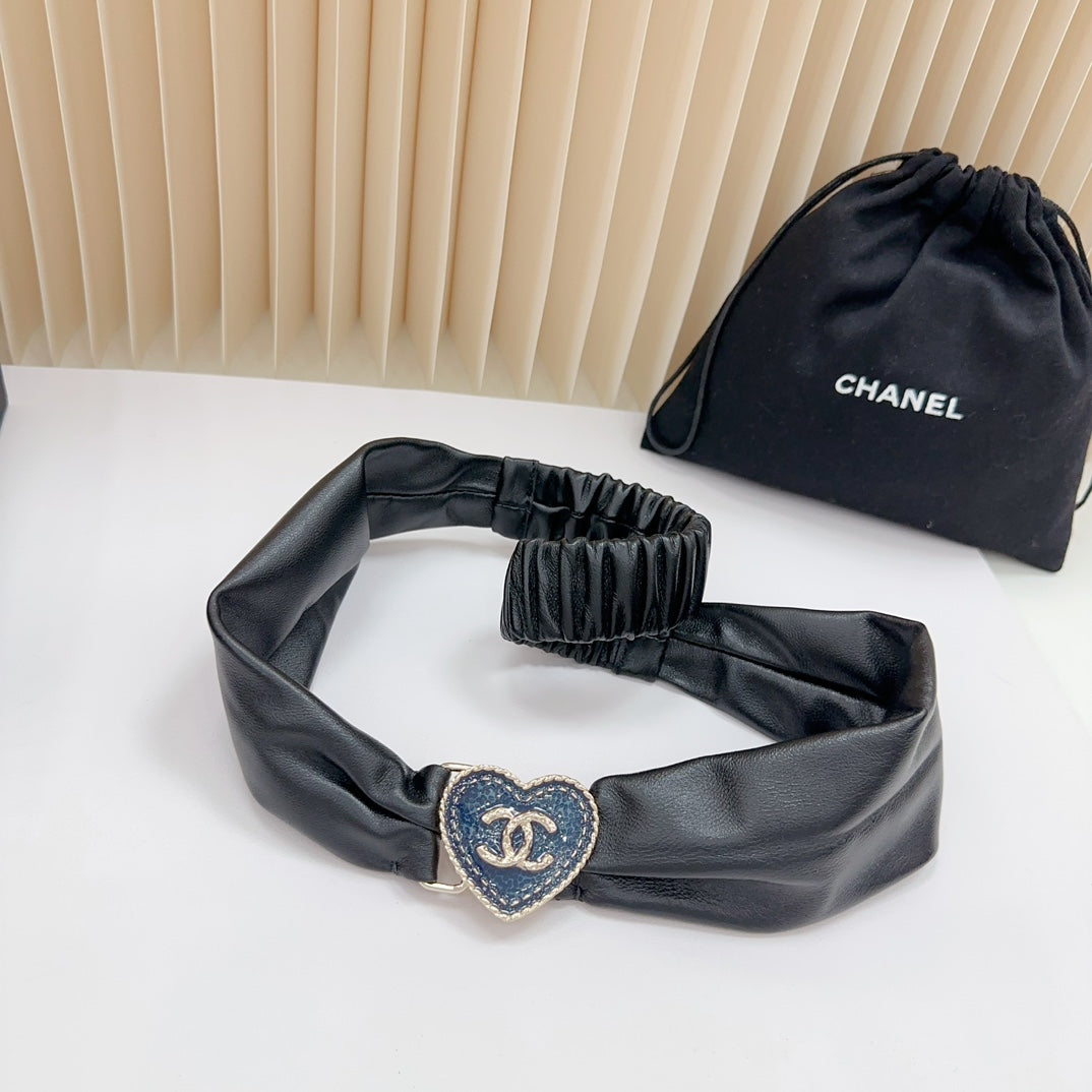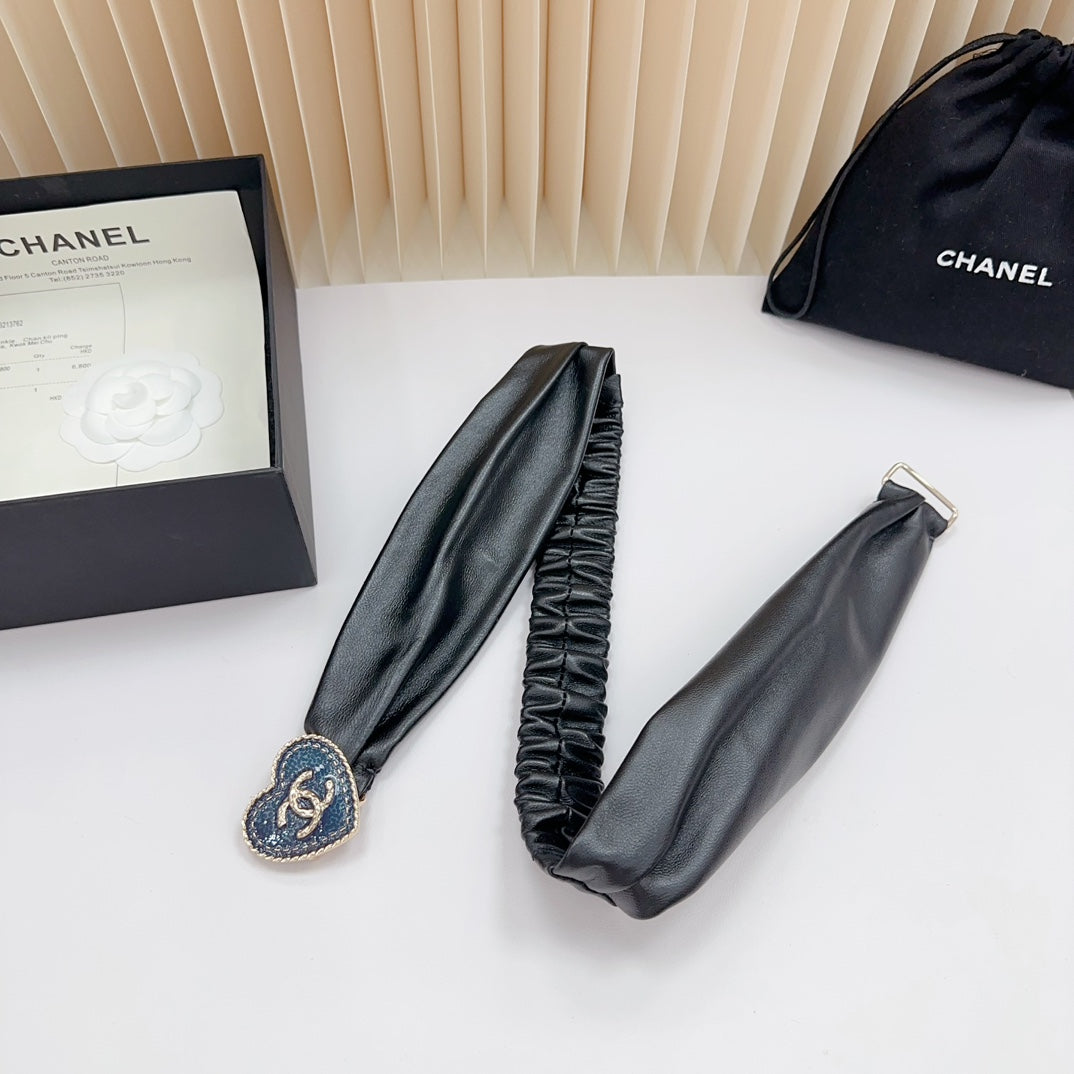 CC 50 MM ELASTIC BELT IN BLACK CALFSKIN GOLD HEART HARDWARE