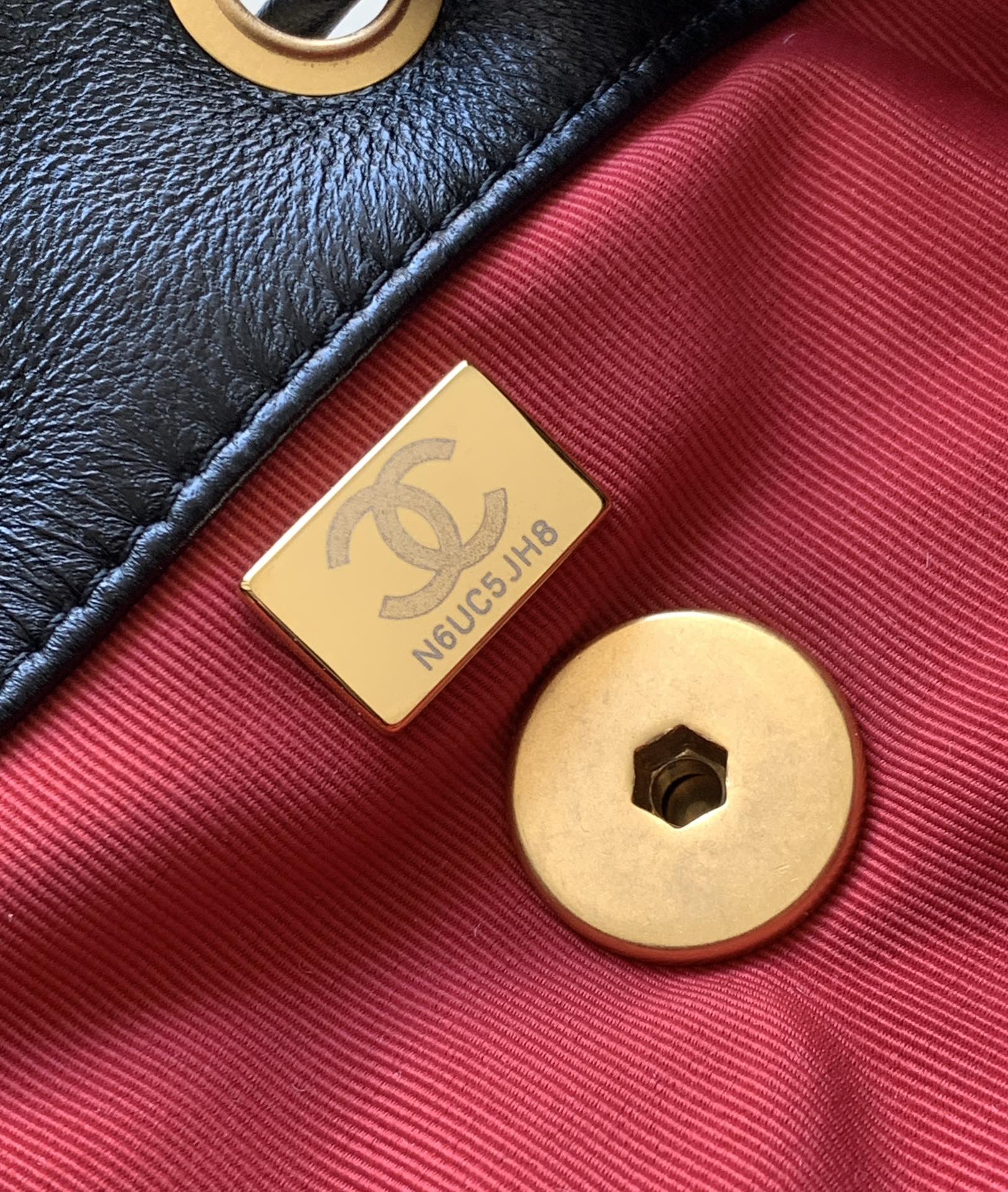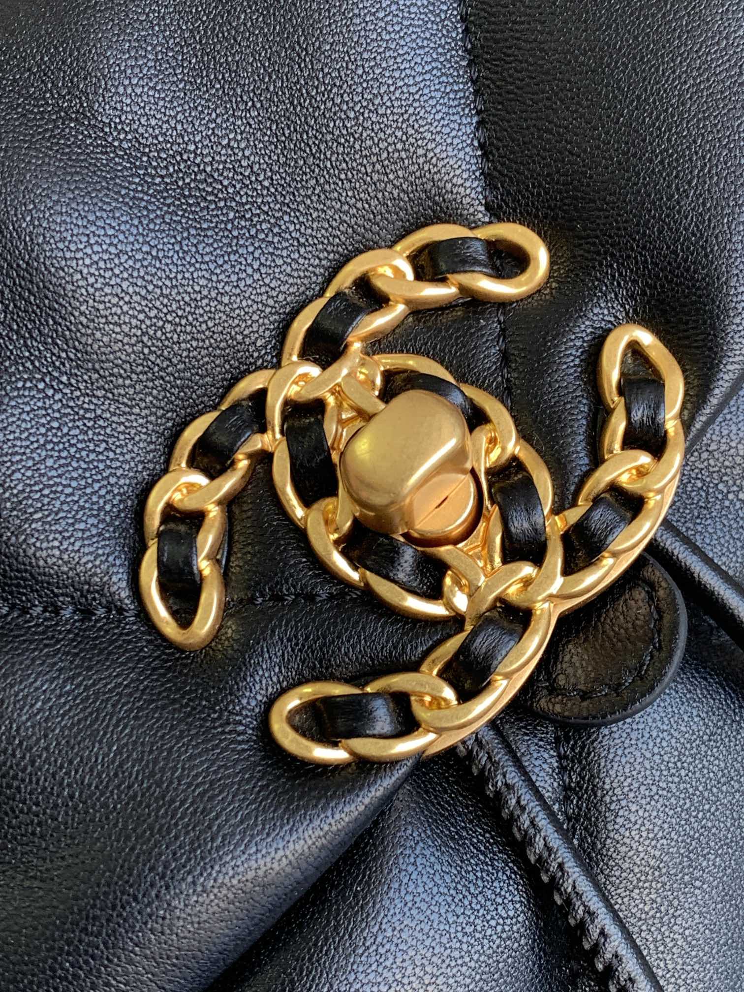 CC BACKPACK 26 IN BLACK CALFSKIN WITH GOLD HARDWARE