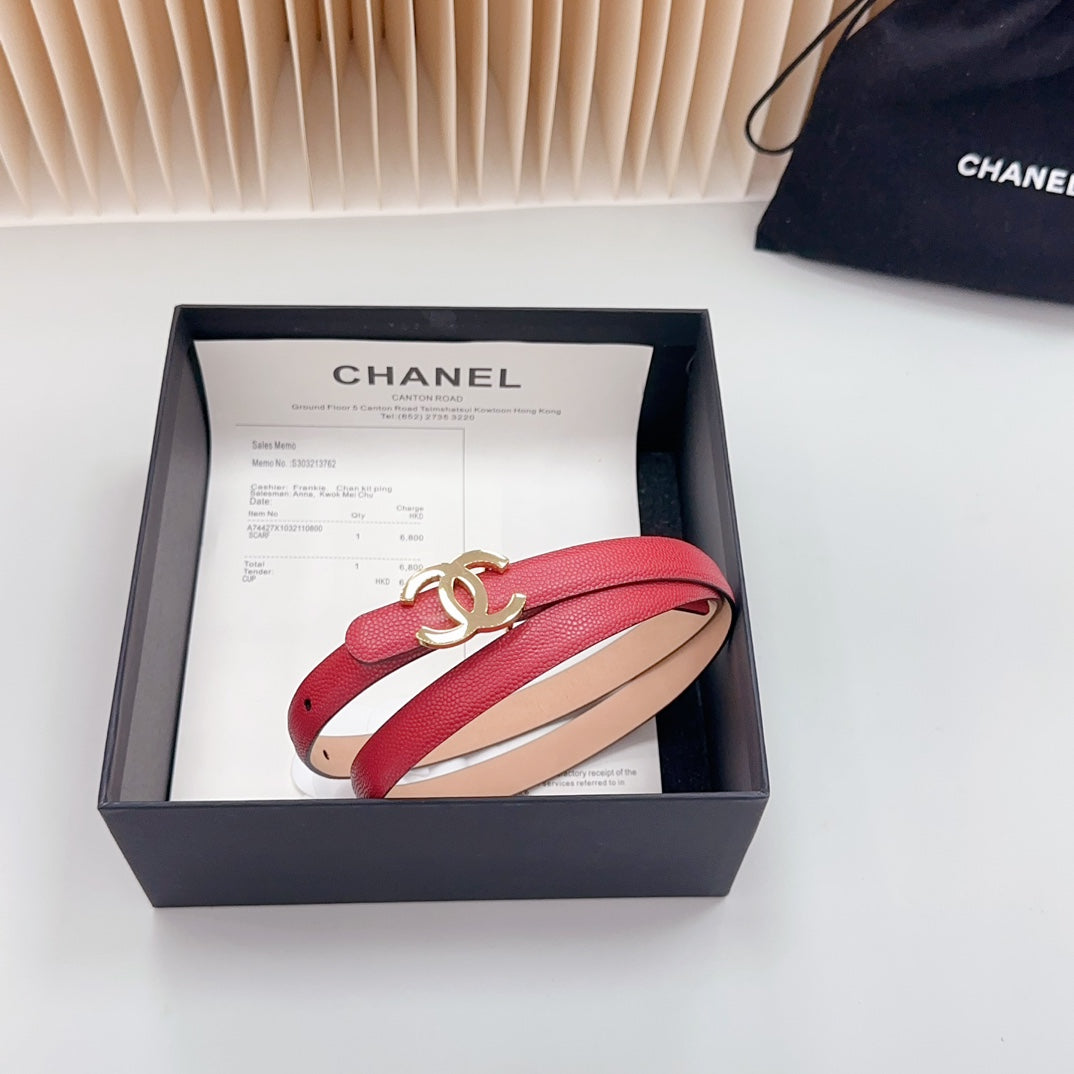 CC BELT 15 MM IN CRIMSON RED CALFSKIN WITH GOLD HARDWARE