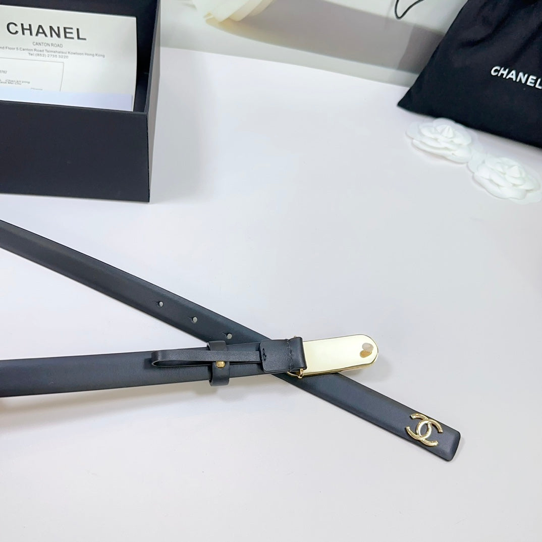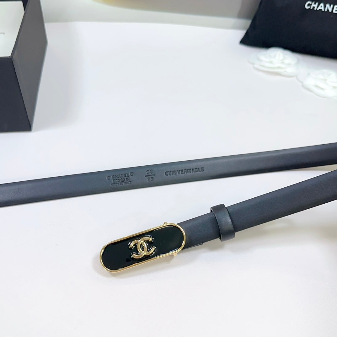 CC BELT 20 MM IN BLACK CALFSKIN WITH GOLD MIX BLACK METAL BUCKLE
