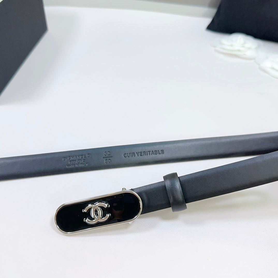 CC BELT 20 MM IN BLACK CALFSKIN WITH SILVER MIX BLACK METAL BUCKLE