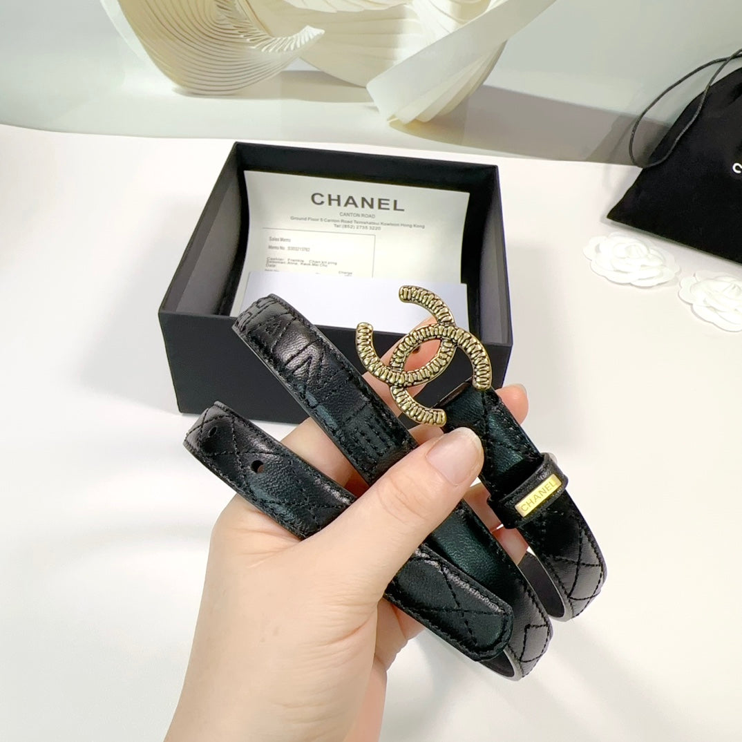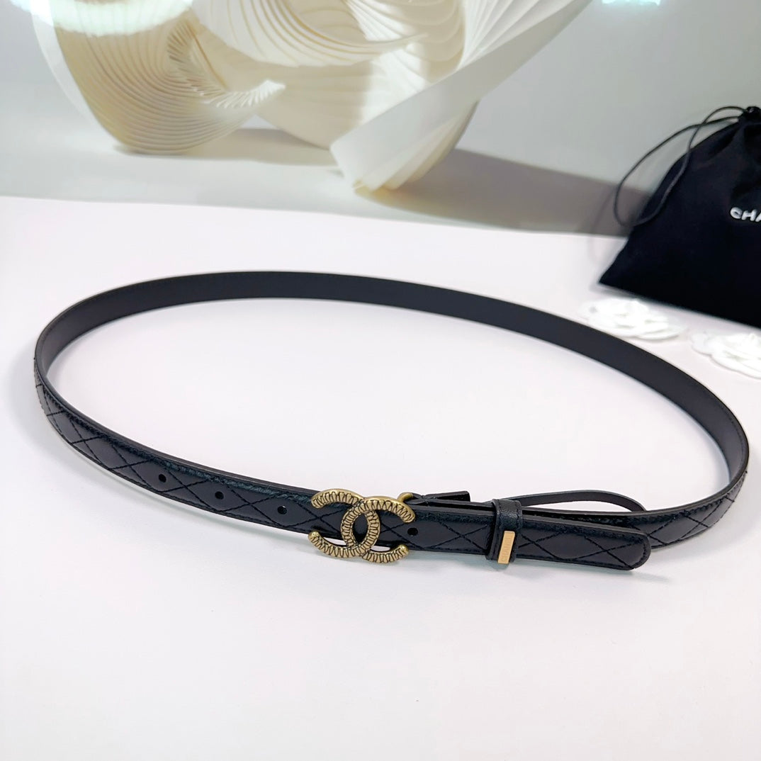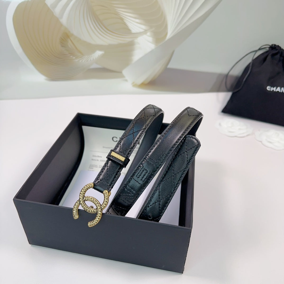 CC BELT 20 MM IN BLACK EMBROIDERED CALFSKIN WITH GOLD HARDWARE