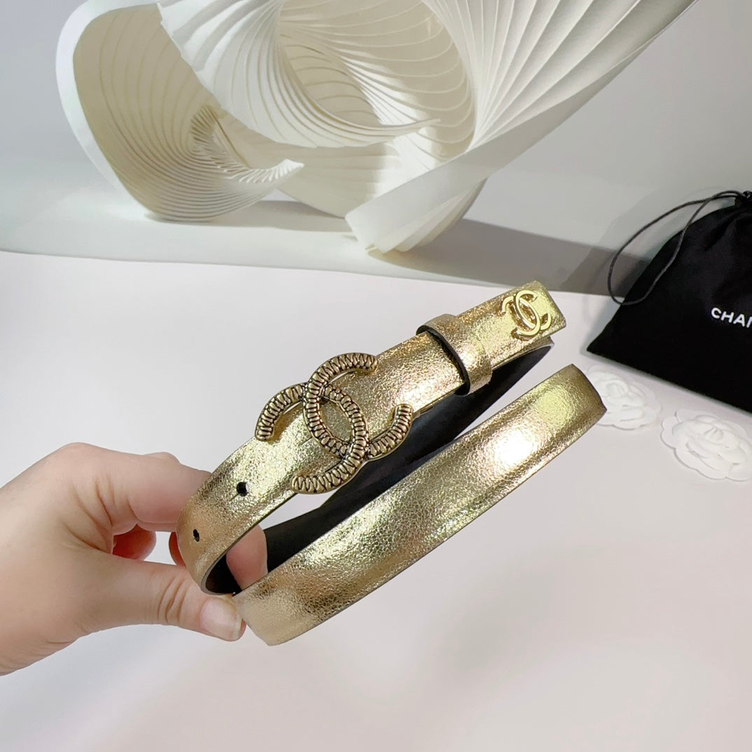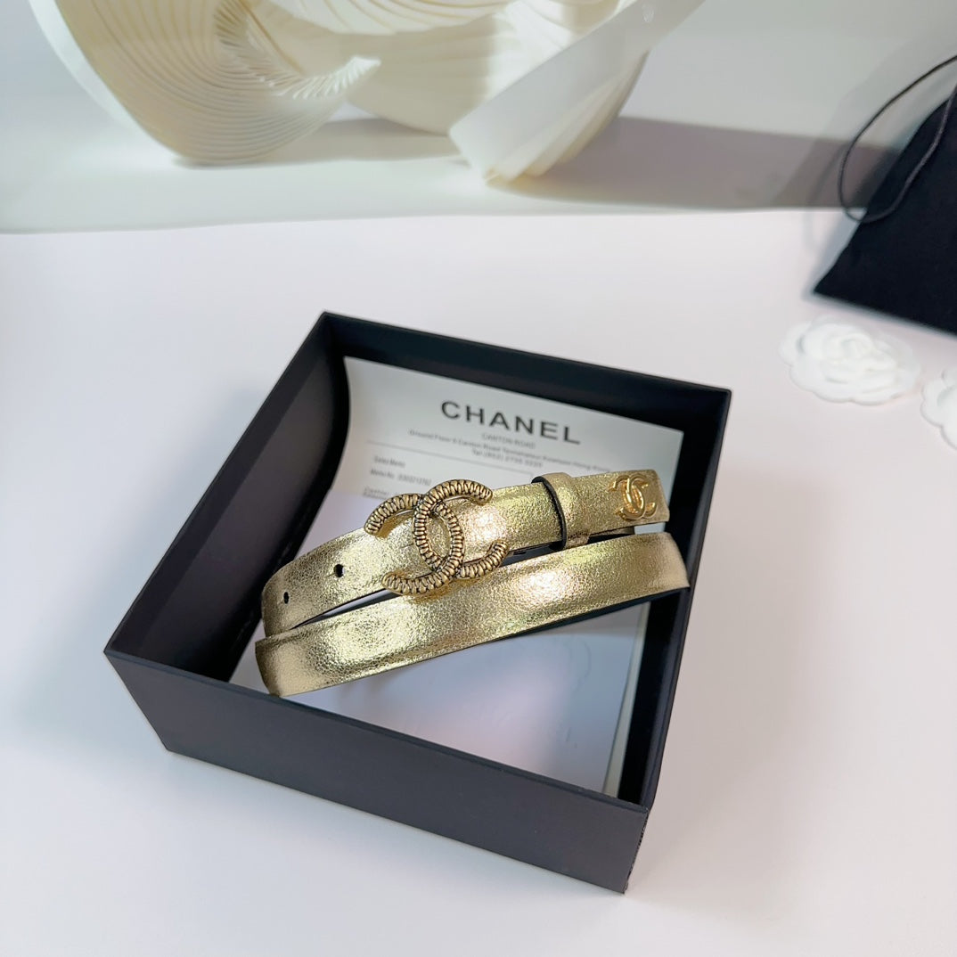 CC BELT 20 MM IN GOLDEN CALFSKIN WITH GOLD HARDWARE