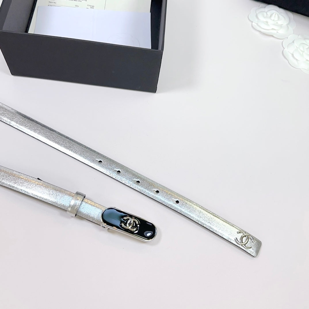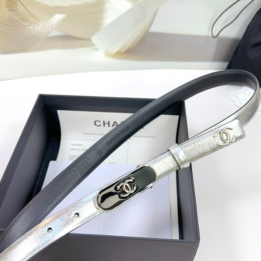 CC BELT 20 MM IN SILVER SMOOTH CALFSKIN WITH BLACK METAL BUCKLE
