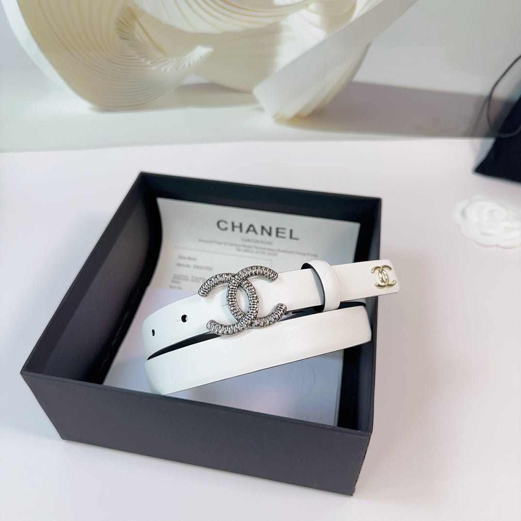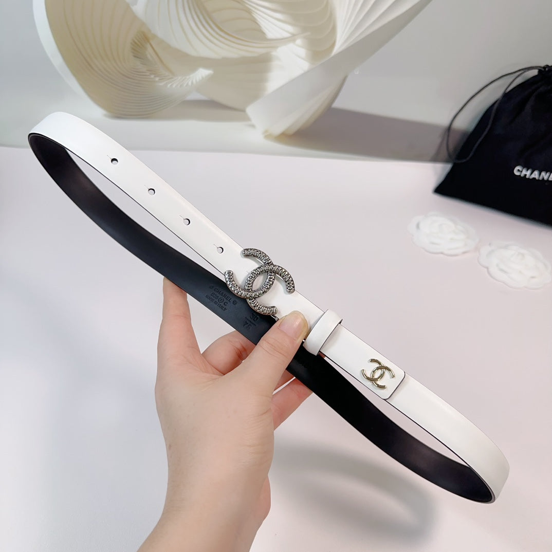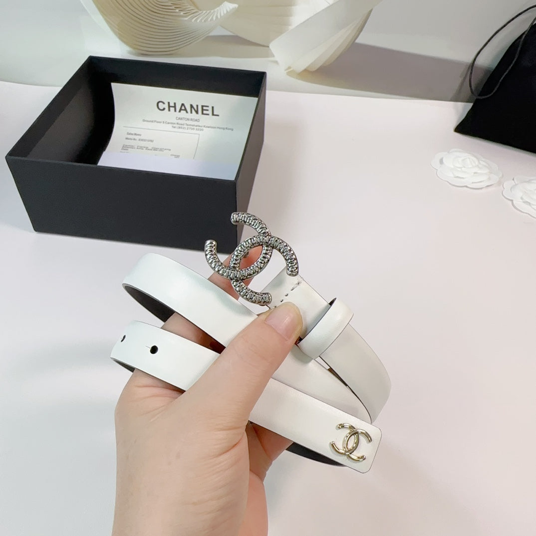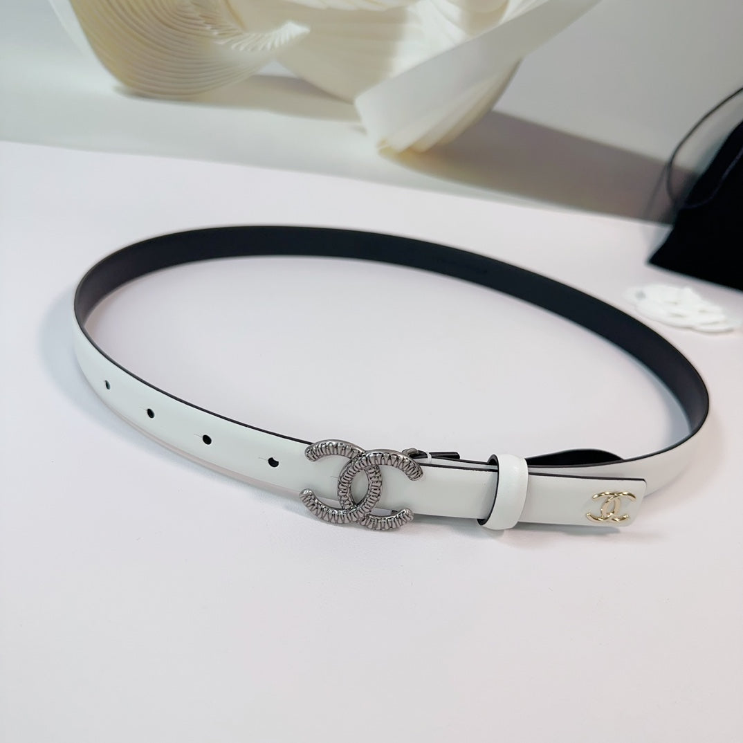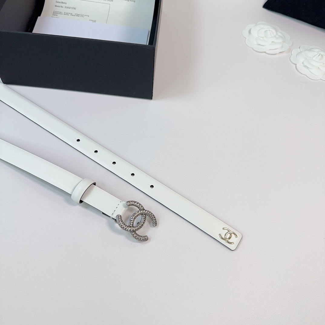CC BELT 20 MM IN WHITE CALFSKIN WITH SILVER BUCKLE AND GOLD LOGO