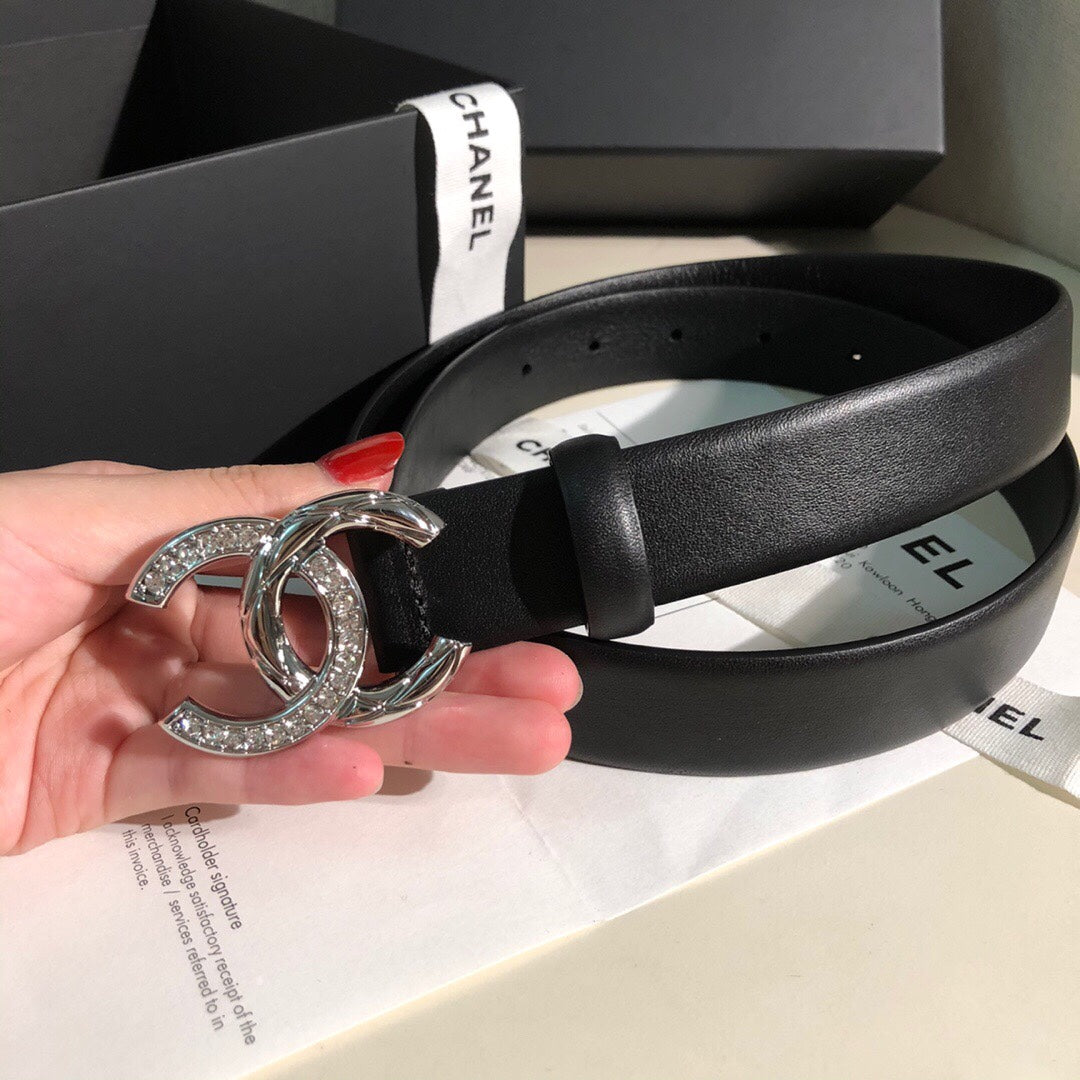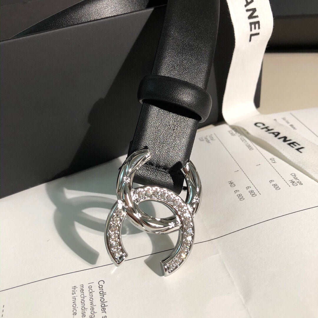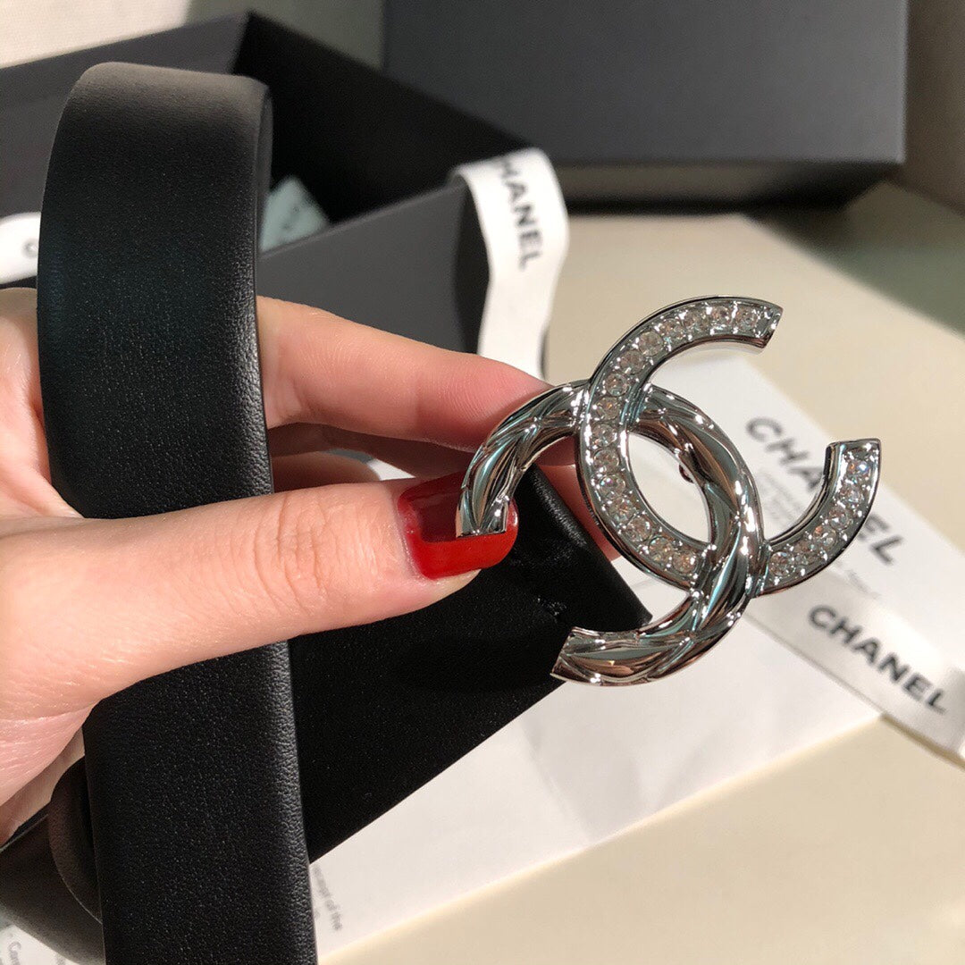 CC BELT 30 MM IN BLACK CALFSKIN WITH SILVER BUCKLE HARDWARE ATTACH RHINSTONES