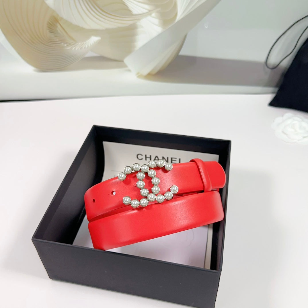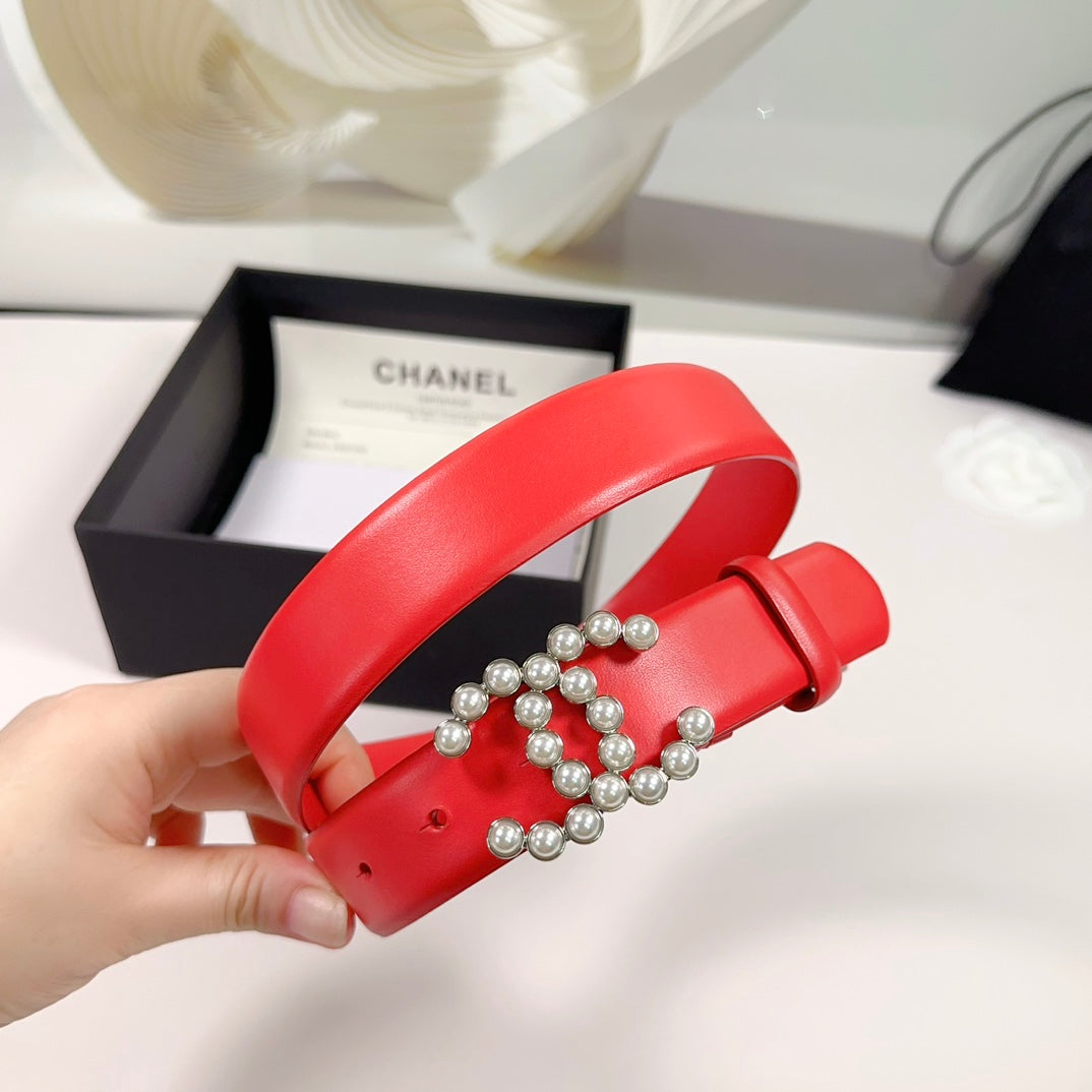 CC BELT 30 MM IN CRIMSON RED SMOOTH CALFSKIN WITH SILVER HARDWARE ATTACH PEARL