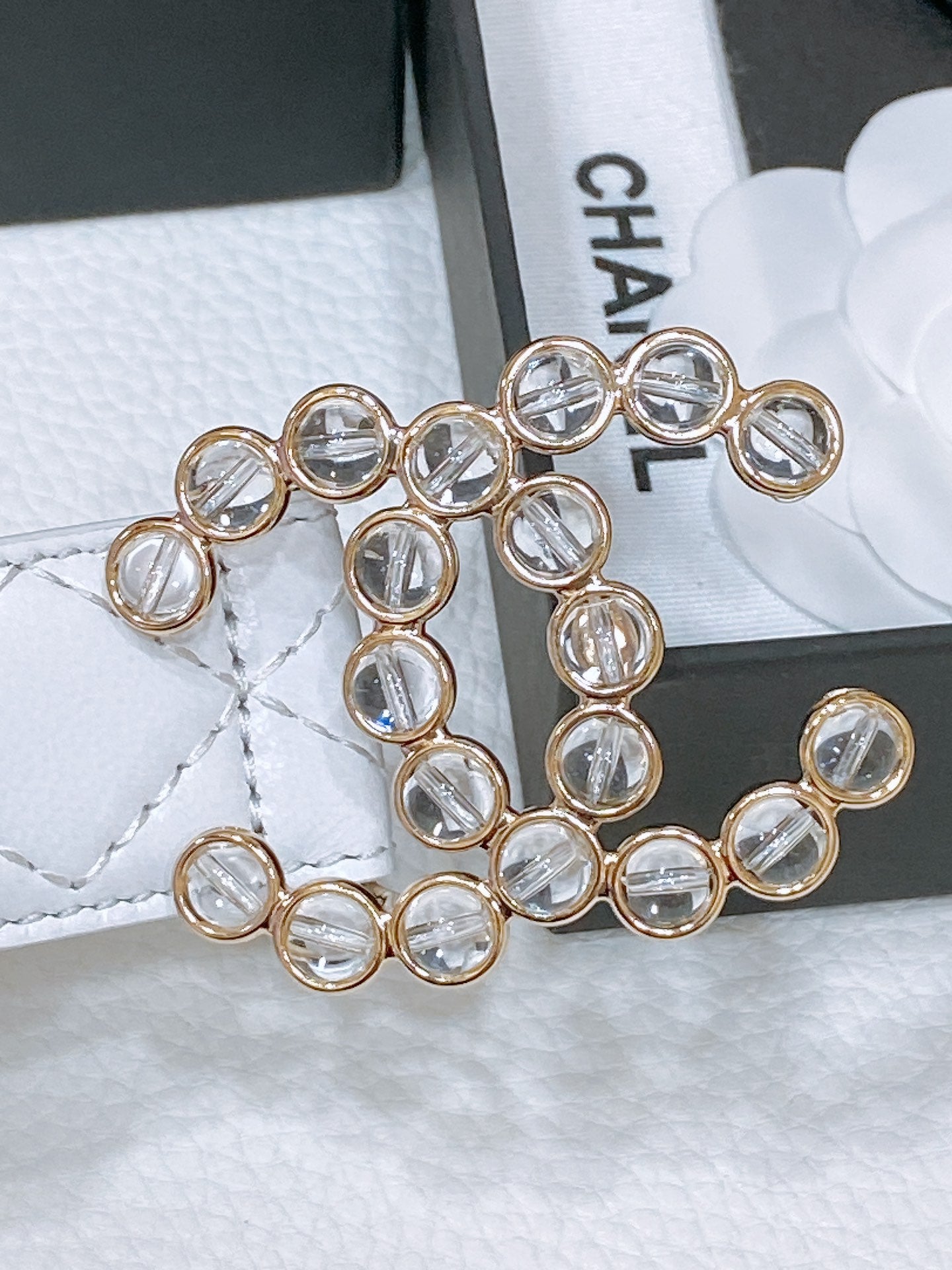 CC BELT 30 MM IN WHITE EMBROIDERED CALFSKIN PEARL LOGO WITH GOLD HARDWARE