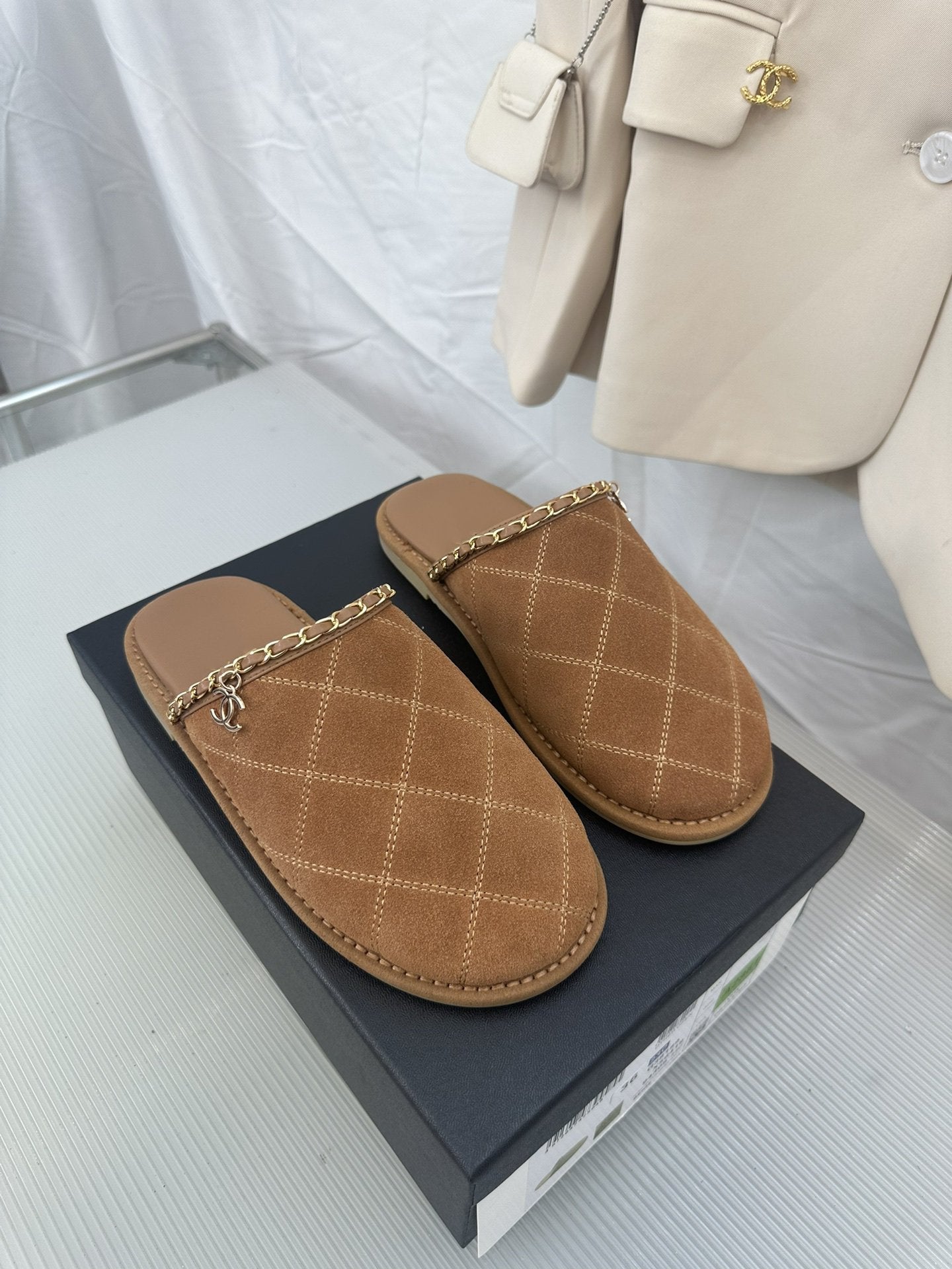 CC Brown Suede Gold Chain Mules