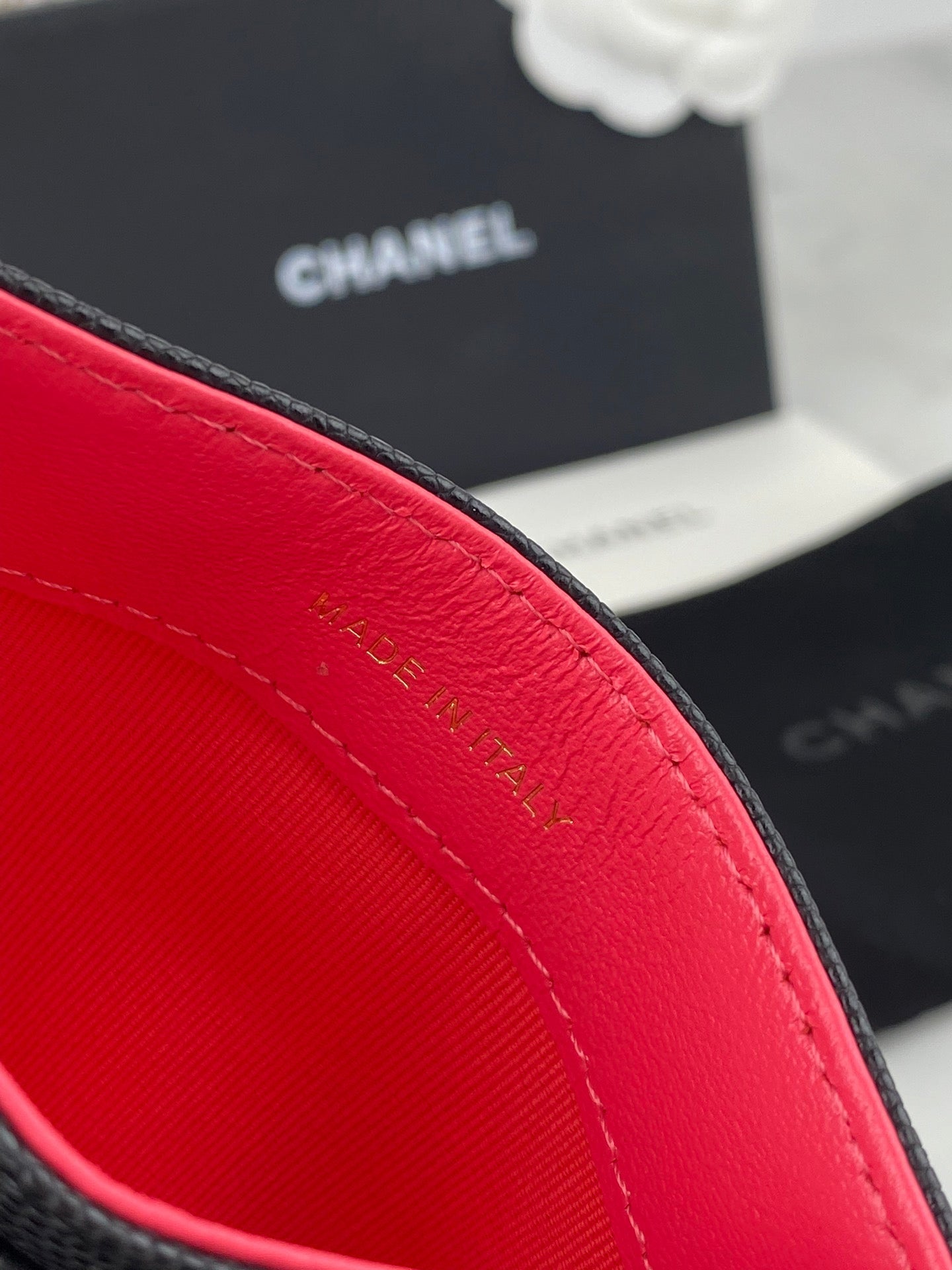CC CARD HOLDER 19.5 BLACK GRAINED CALFSKIN GOLD ICON
