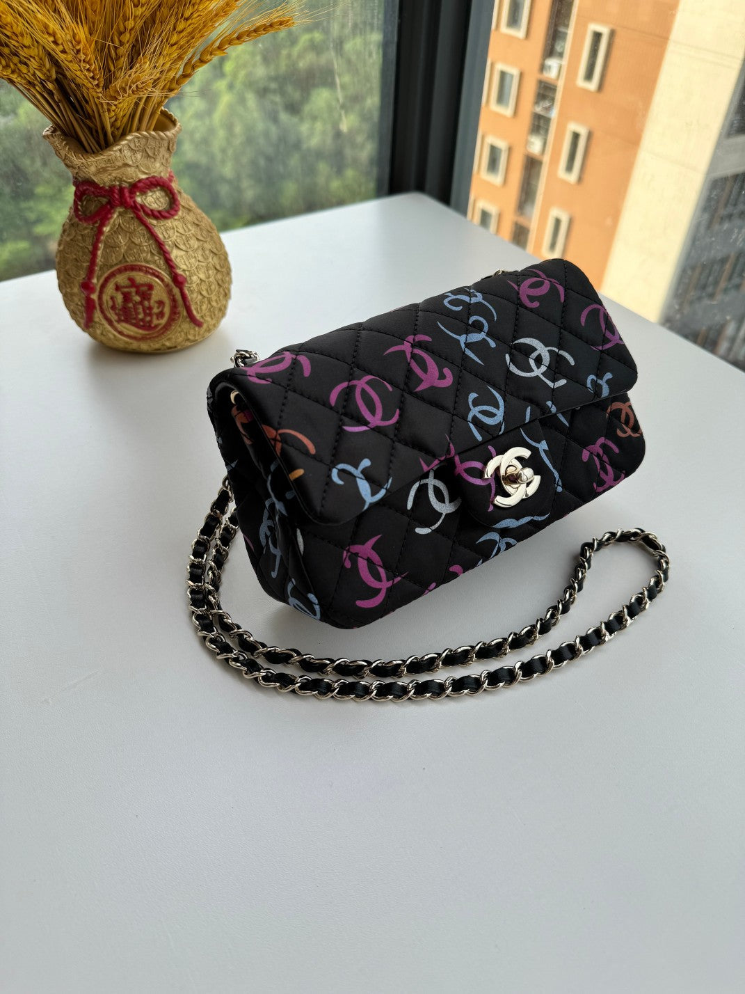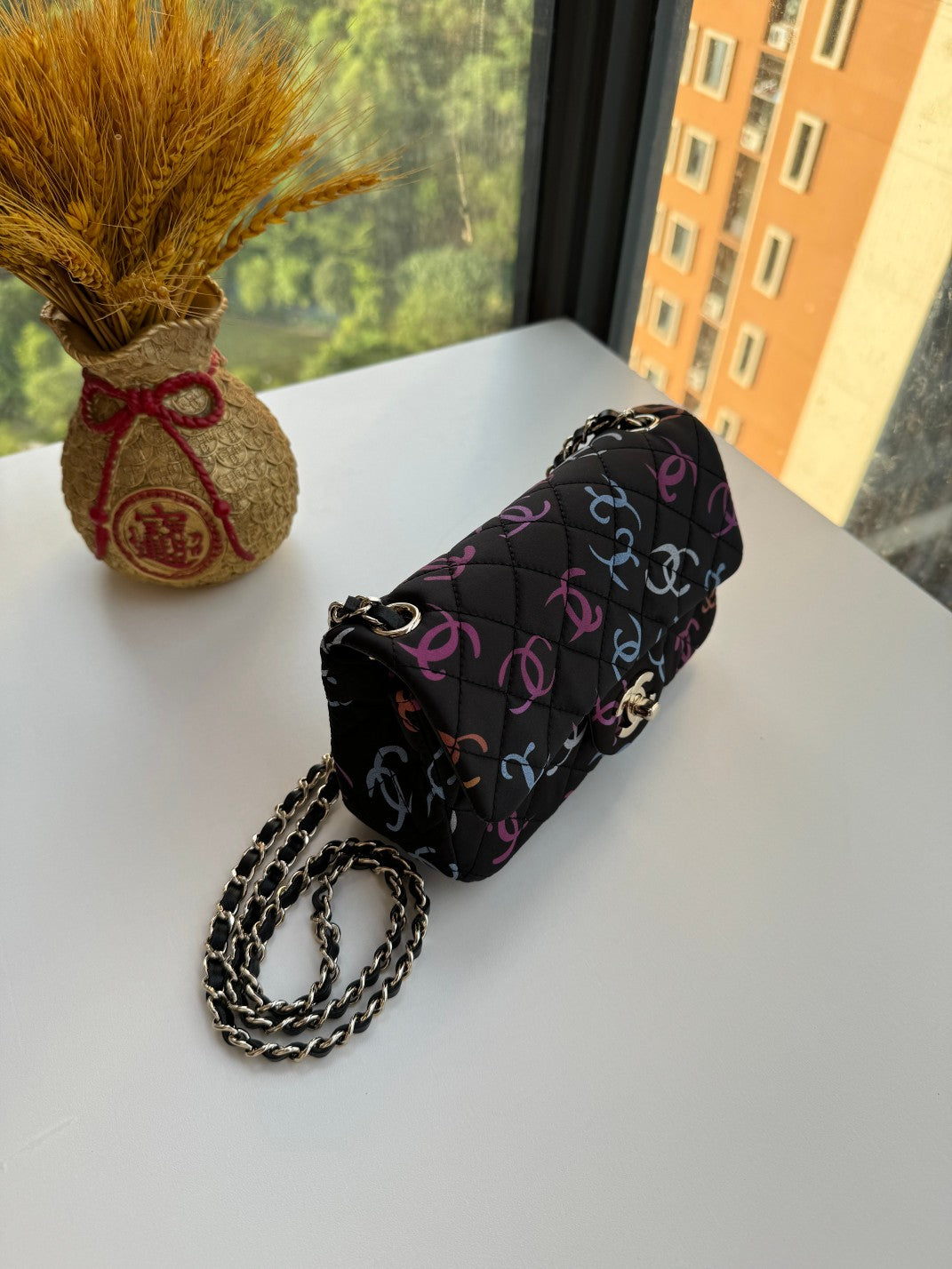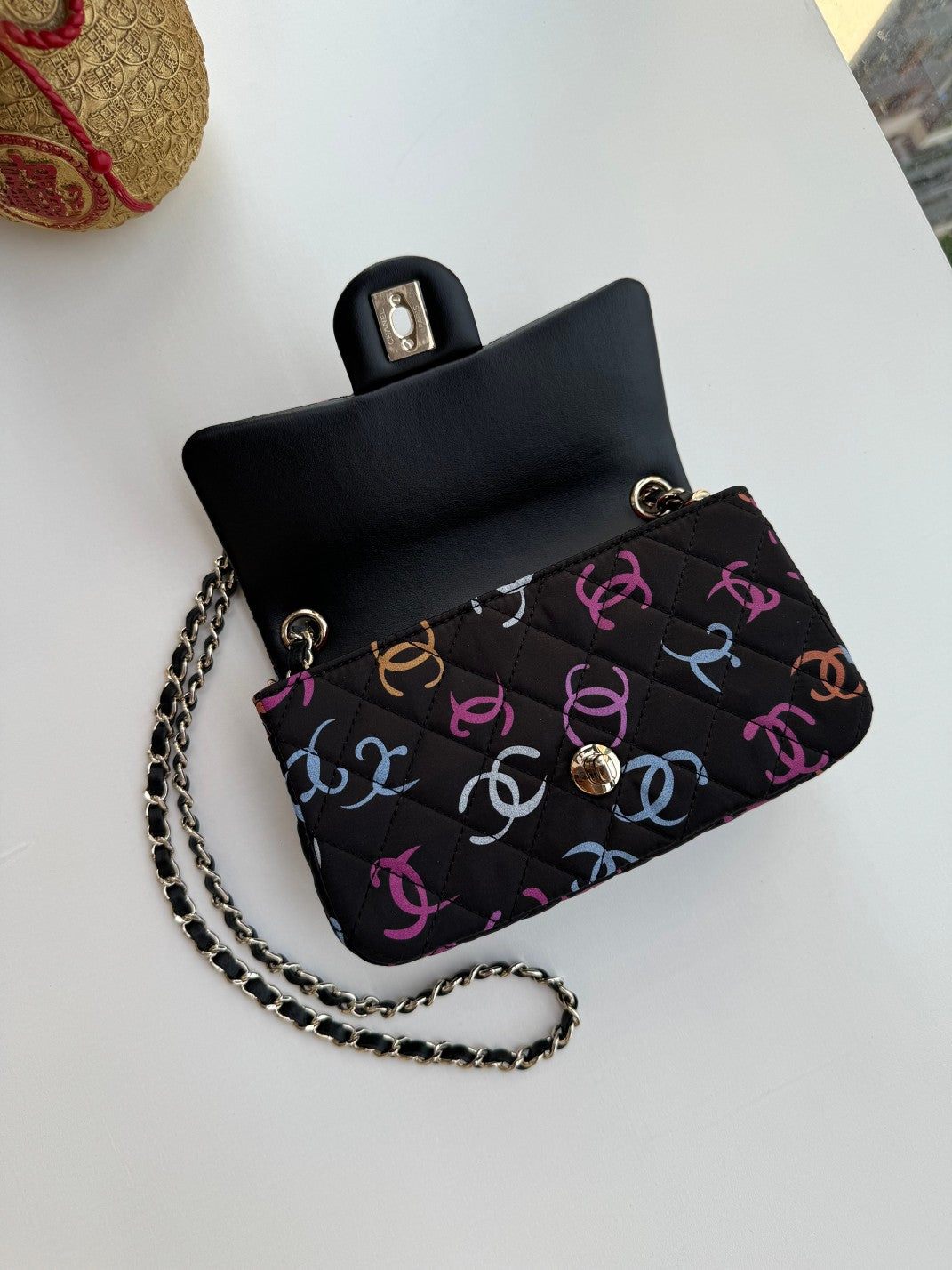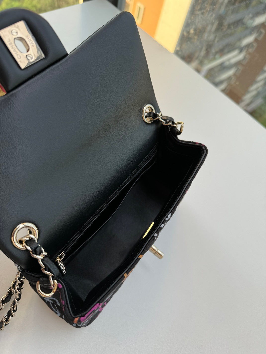 CC CLASSIC 11.12 HANDBAG BLACK MIX MULTICOLOR PRINTED FABRIC