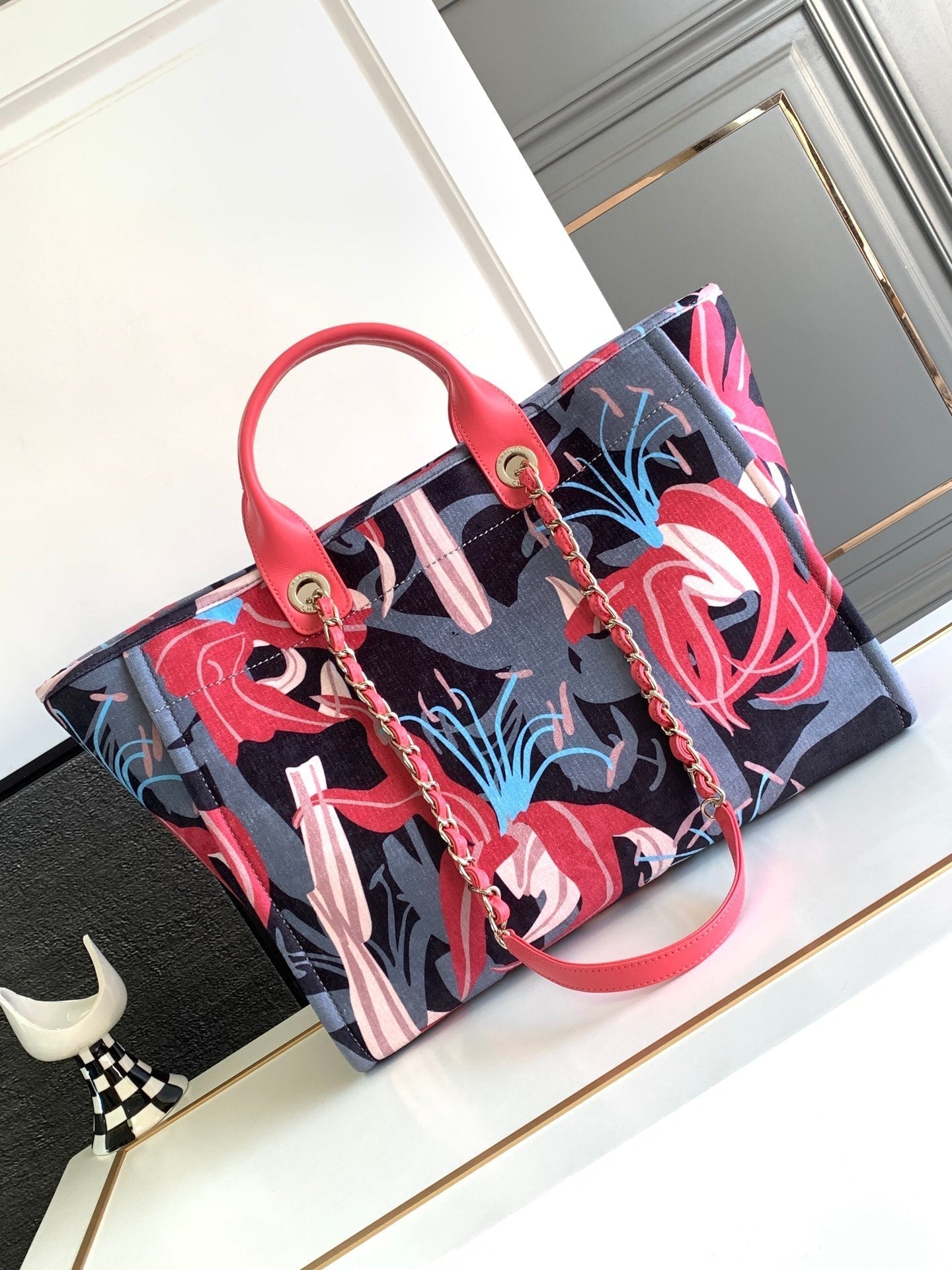 CC CLASSIC LARGE 38 TOTE IN GREY MIX COLORFUL CANVAS