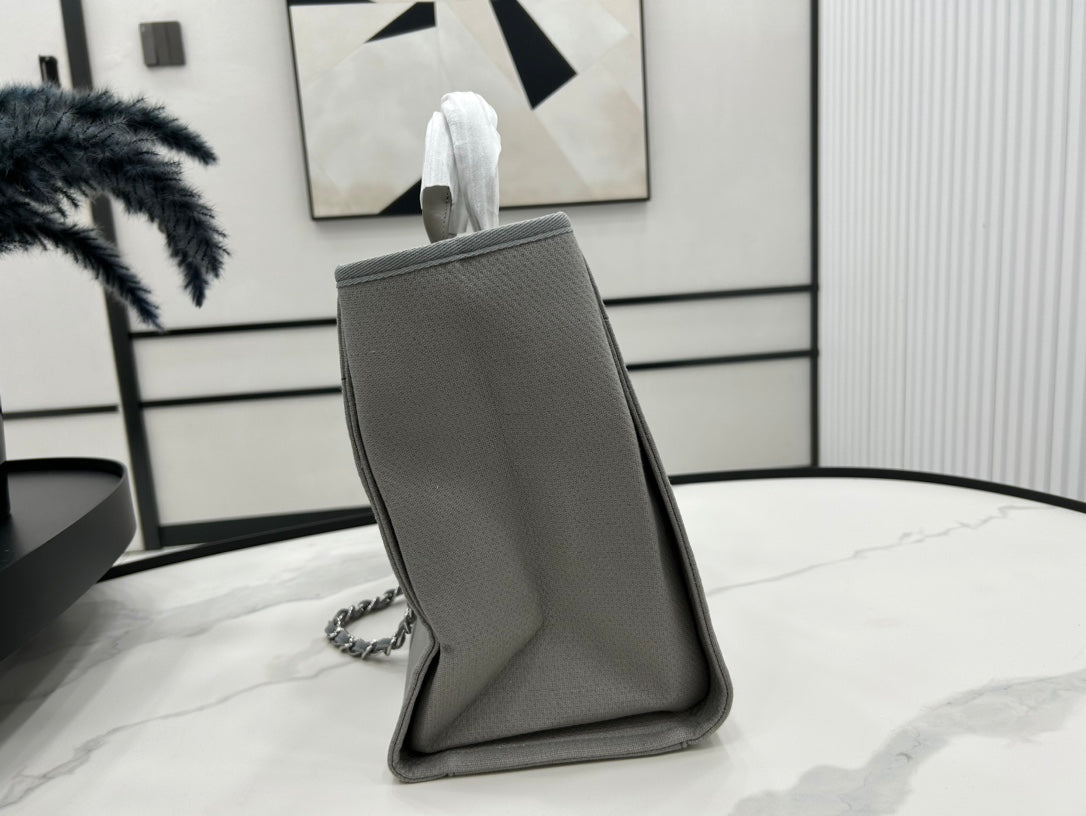 CC DEAUVILLE LARGE 38 TOTE BAG IN GREY CANVAS WITH WHITE LOGO
