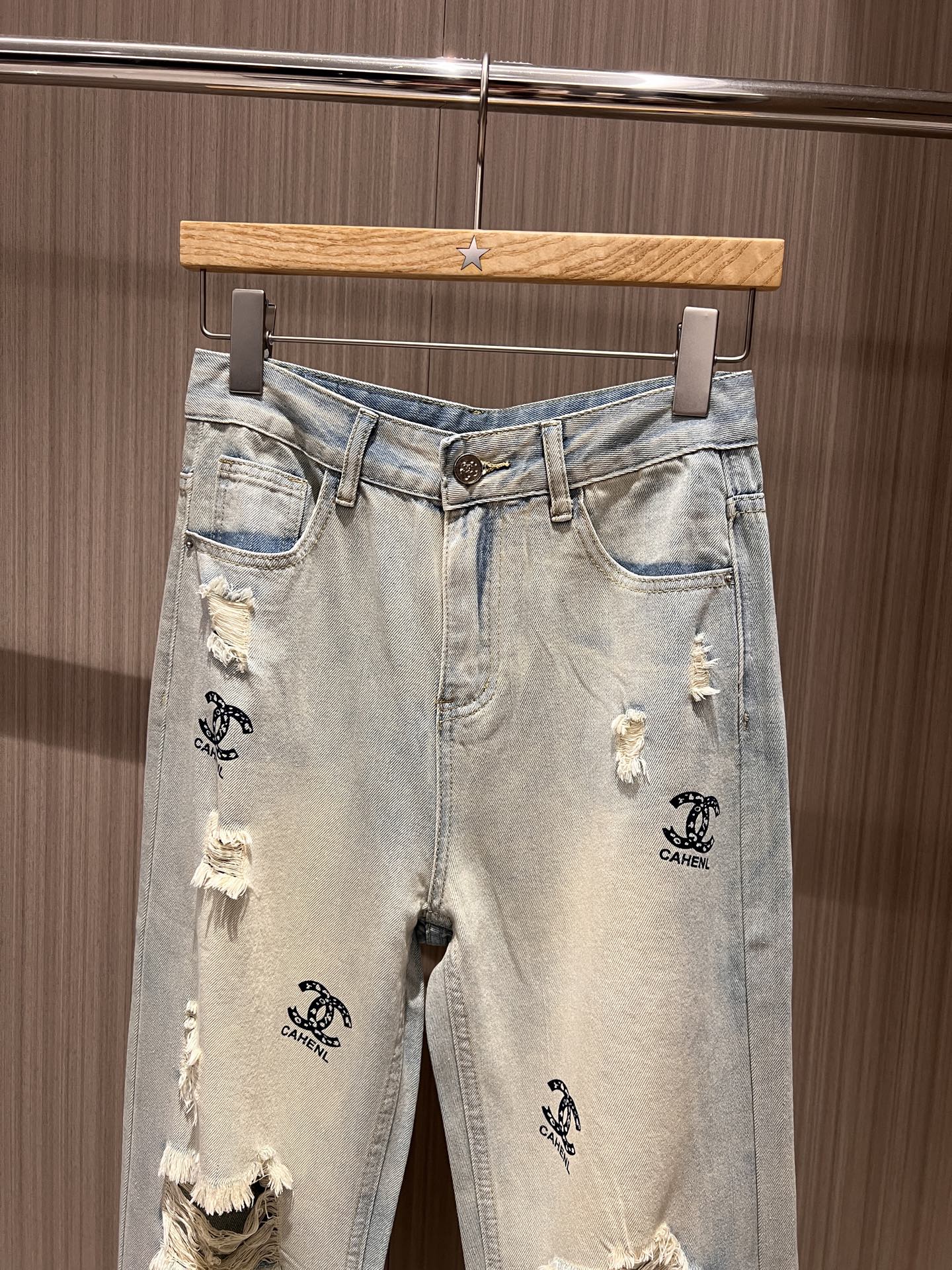 CC Double C Printed Ripped Jeans Retro Light Blue Cotton