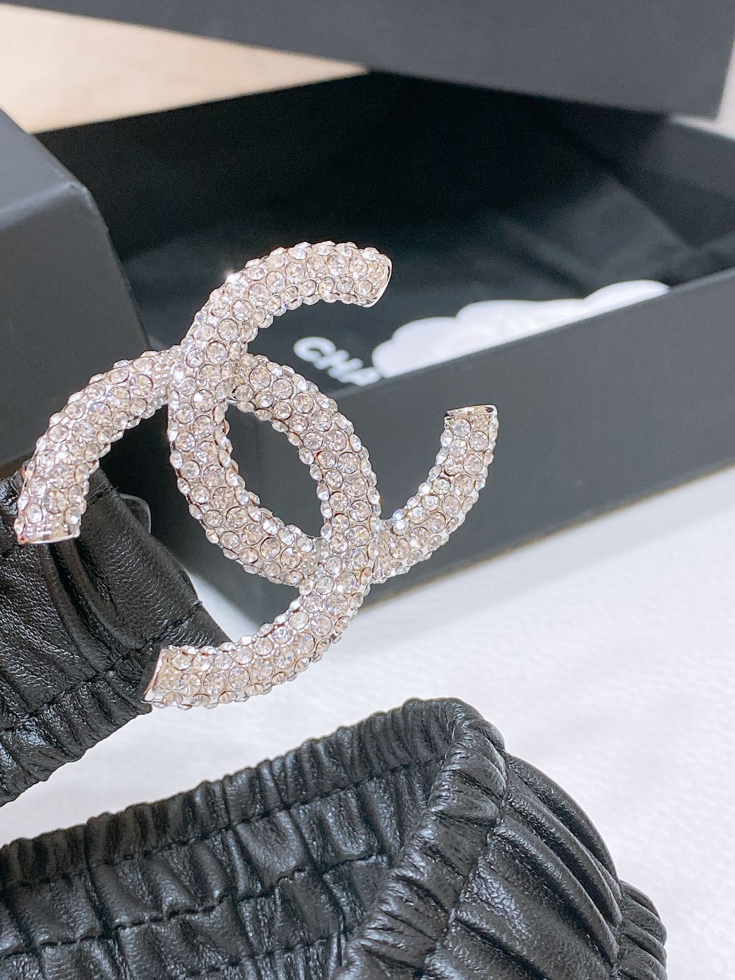 CC ELASTIC BELT 30MM IN BLACK CALFSKIN SILVER HARDWARE WITH RHINSTONES