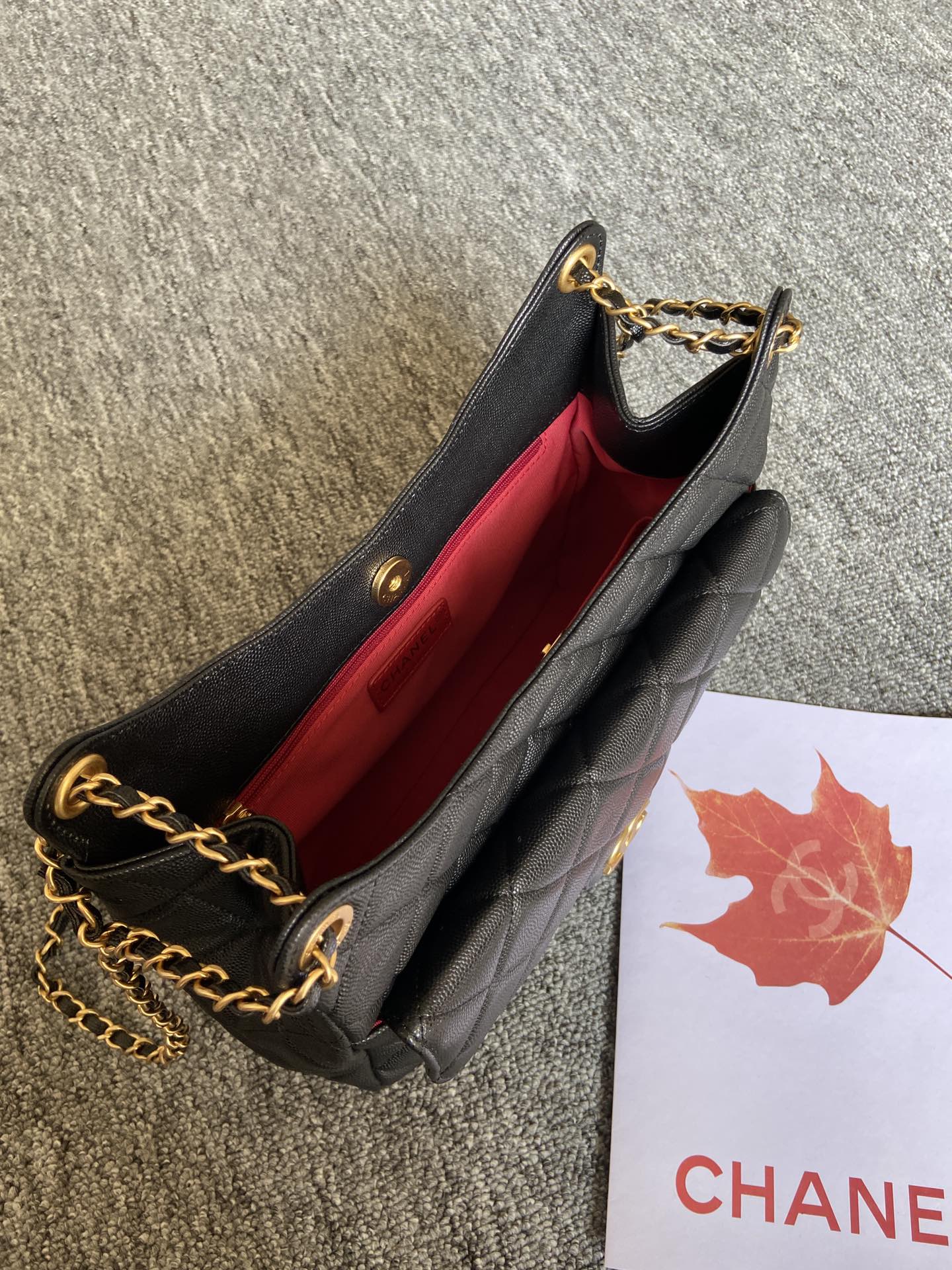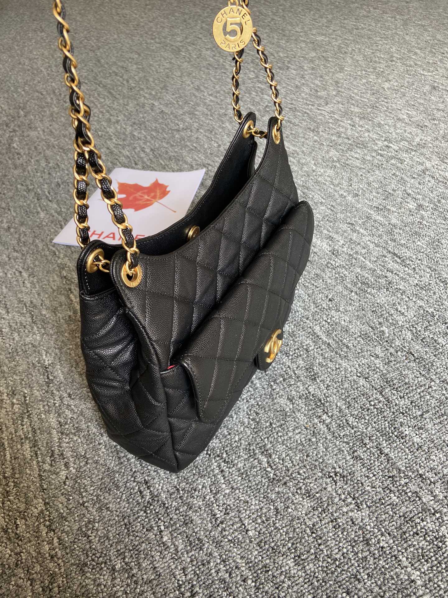 CC HOBO BAG 27 IN BLACK PEBBLED CALFSKIN