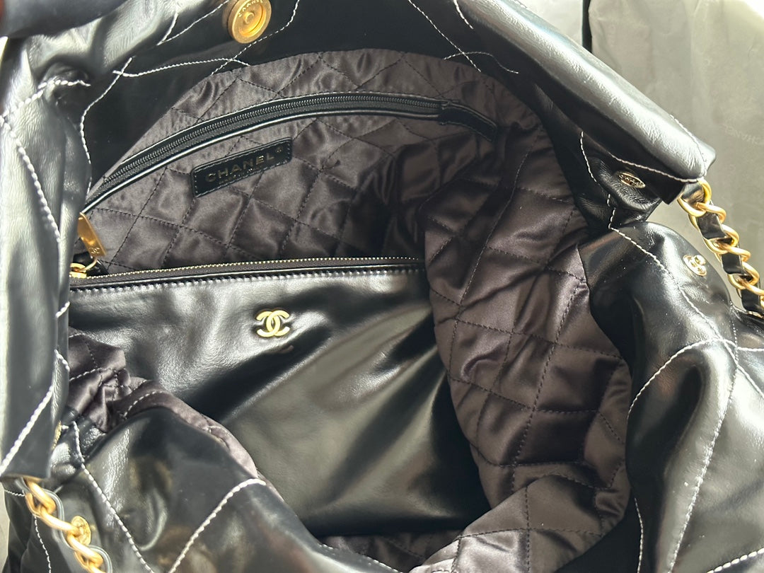 CC LARGE 42 HANDBAG IN BLACK SHINY CALFSKIN GOLD HARDWARE