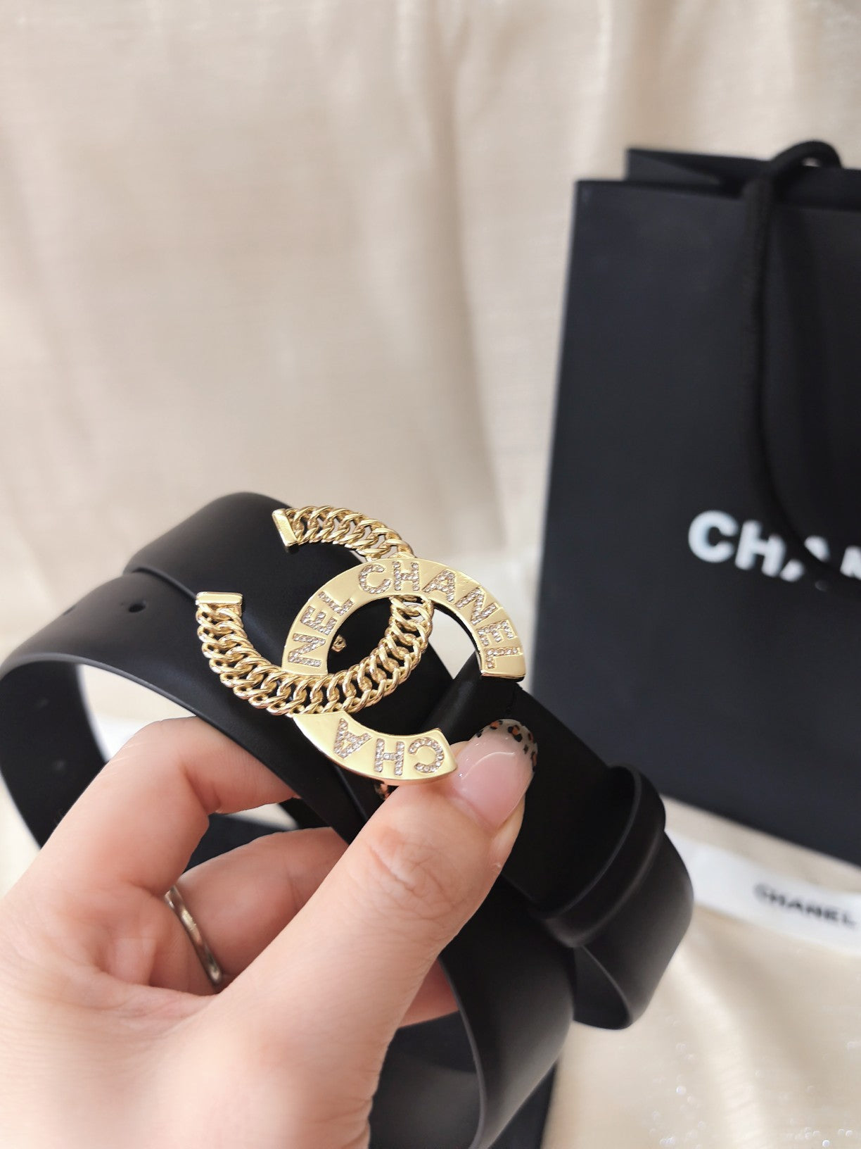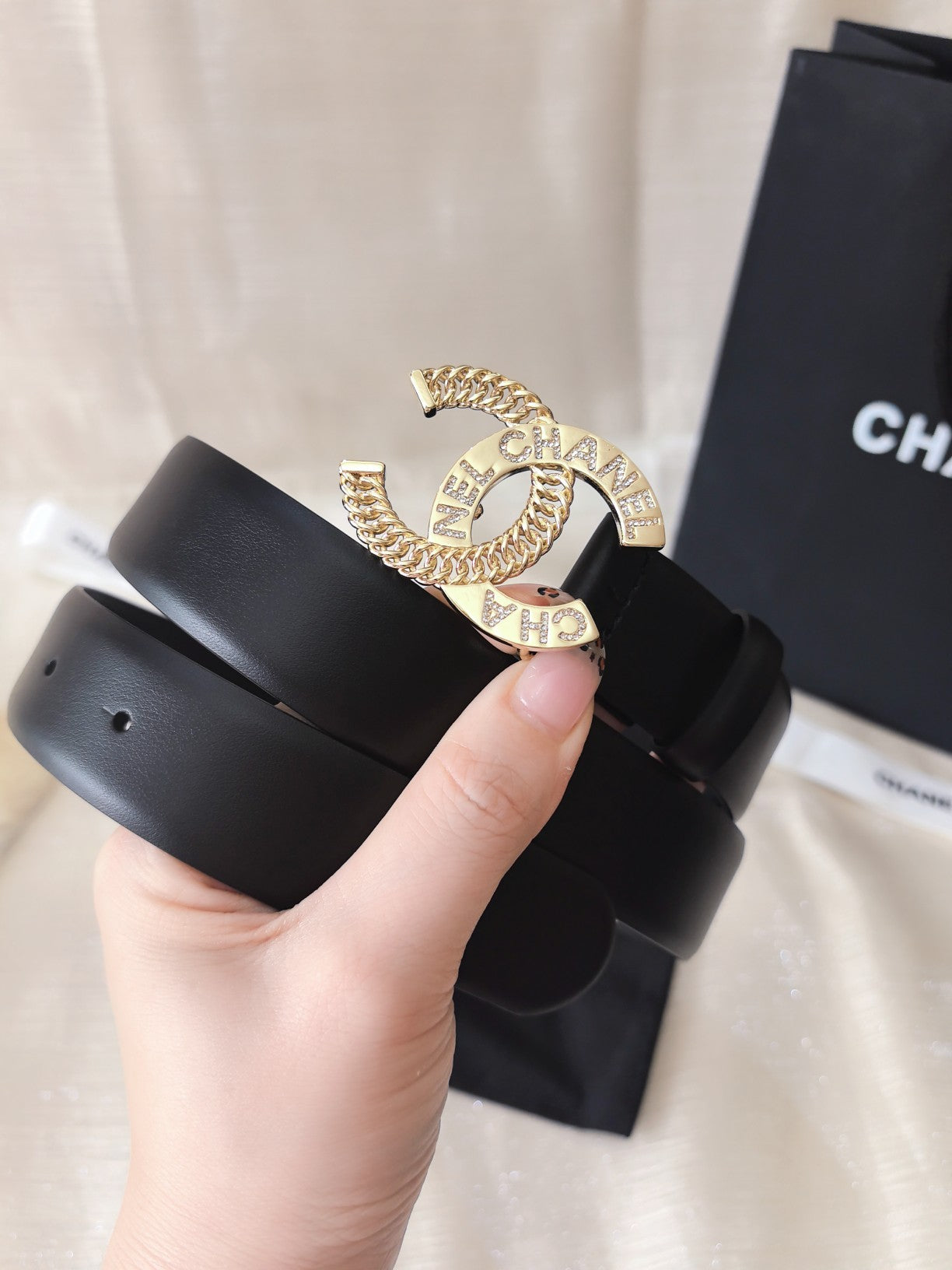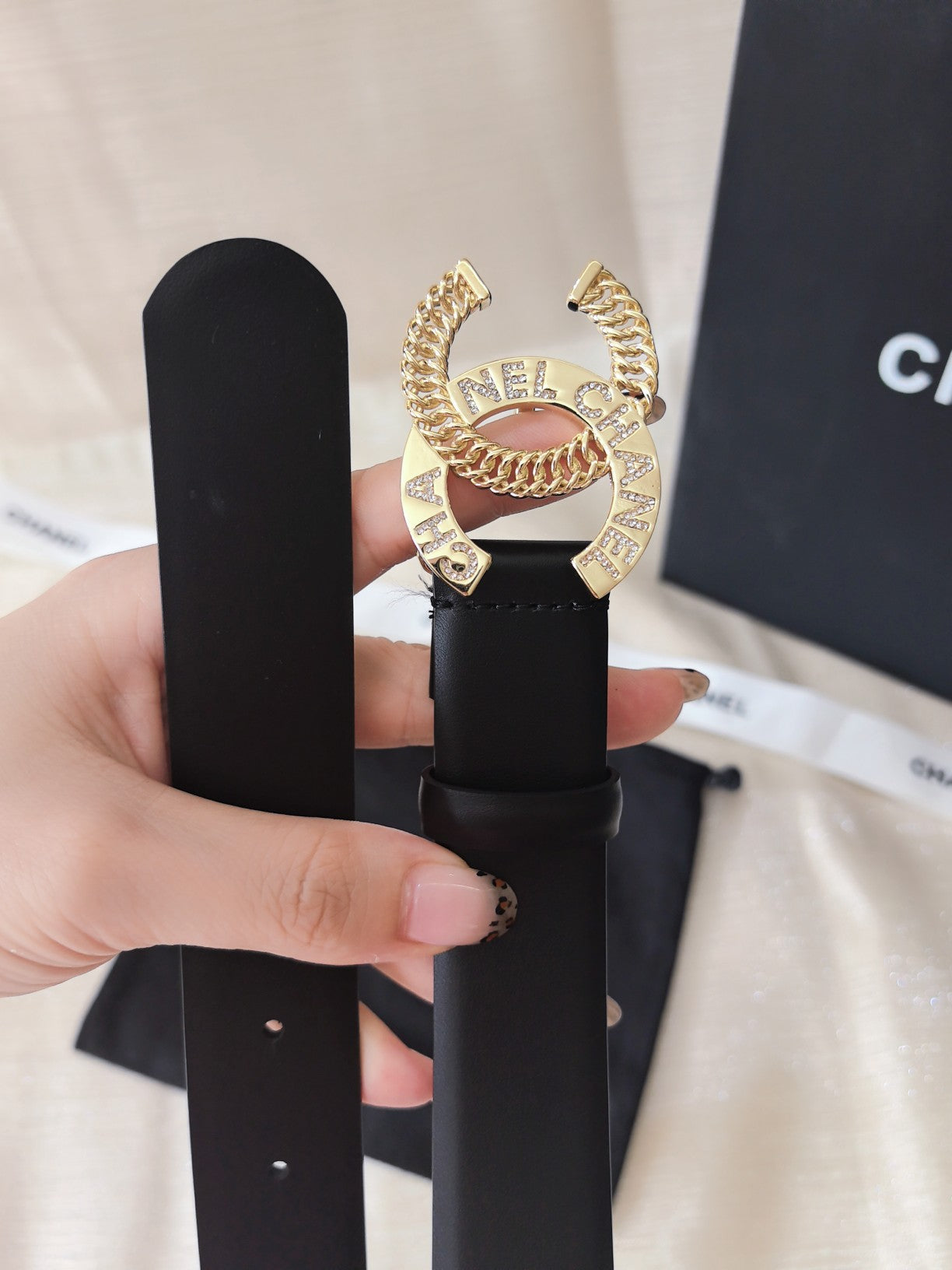 CC MEDIUM 30 MM BELT BLACK CALFSKIN GOLD HARDWARE WITH LETTER