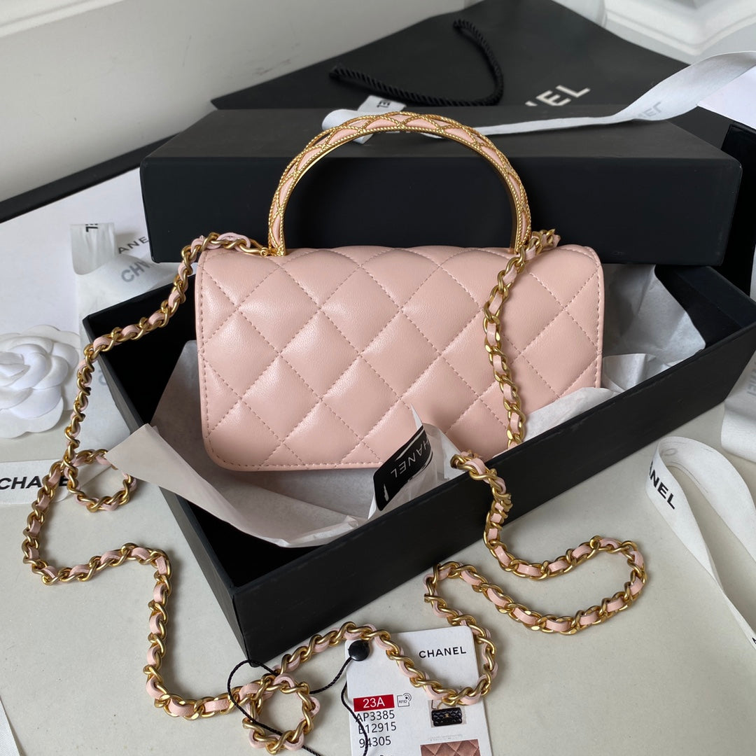 CC MINI 17 BAG IN LIGHT PINK CALFSKIN GOLD HARDWARE
