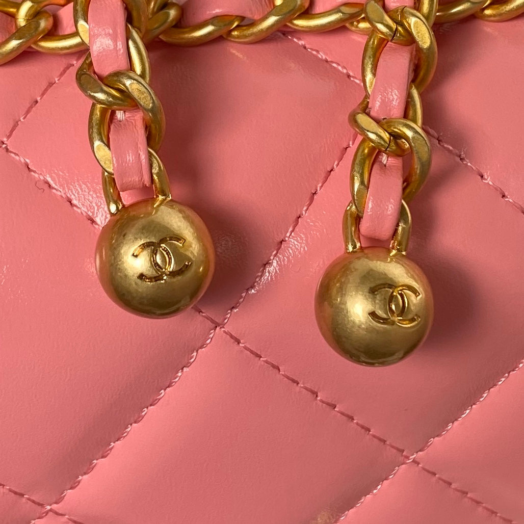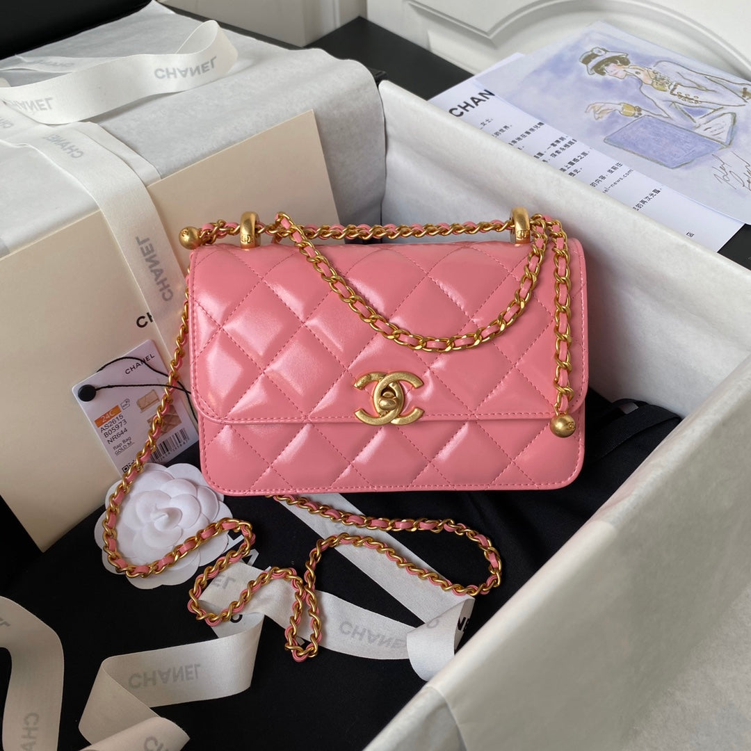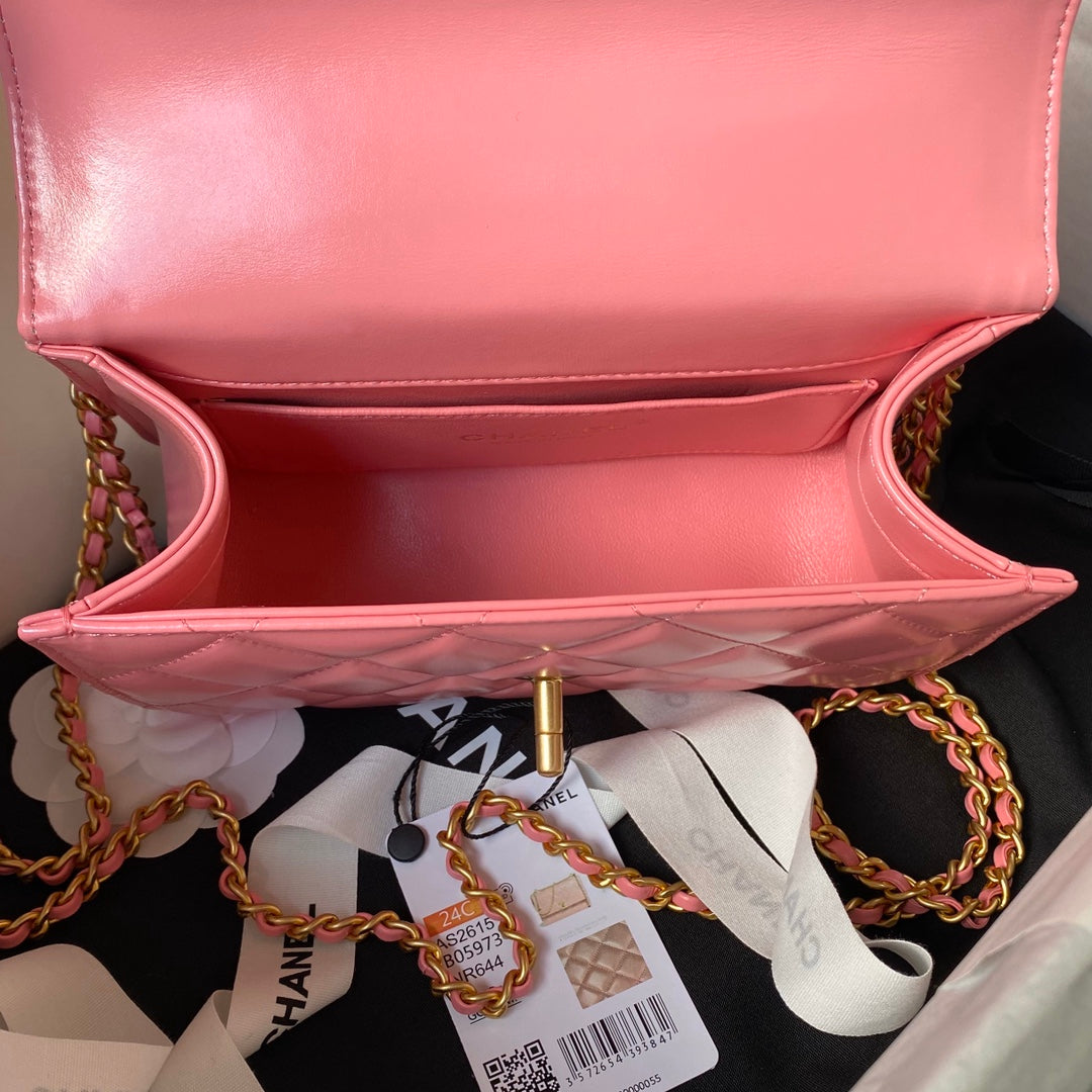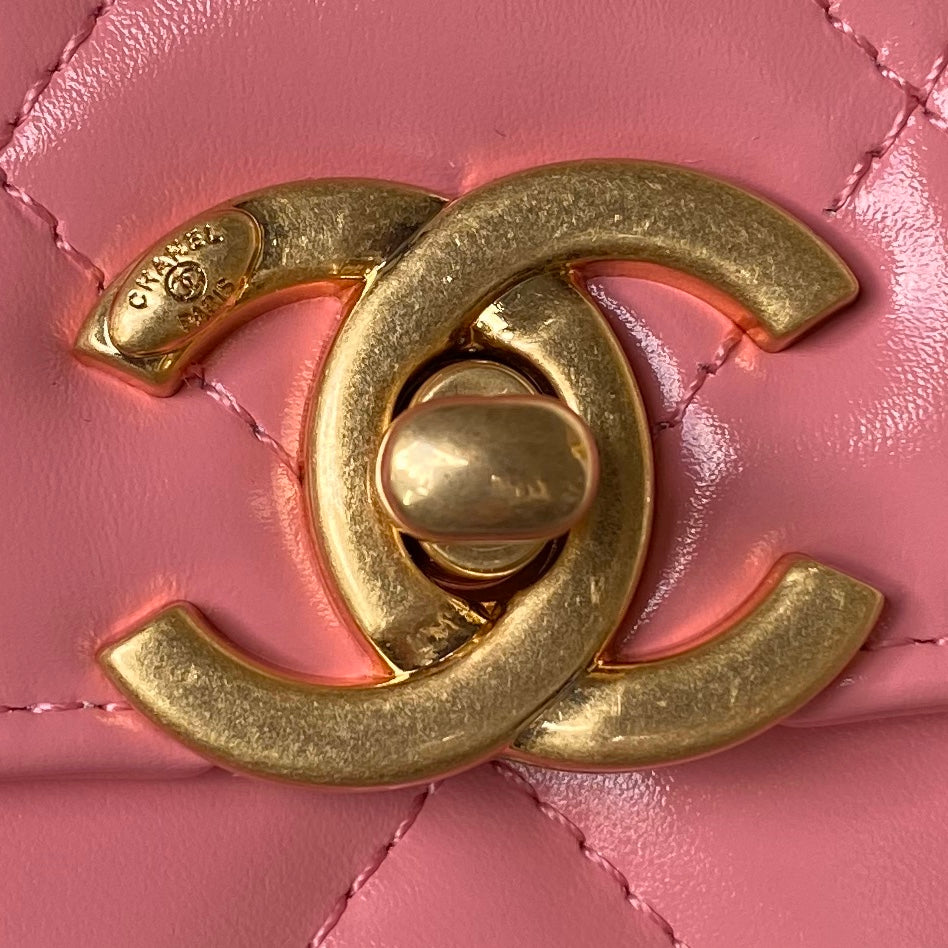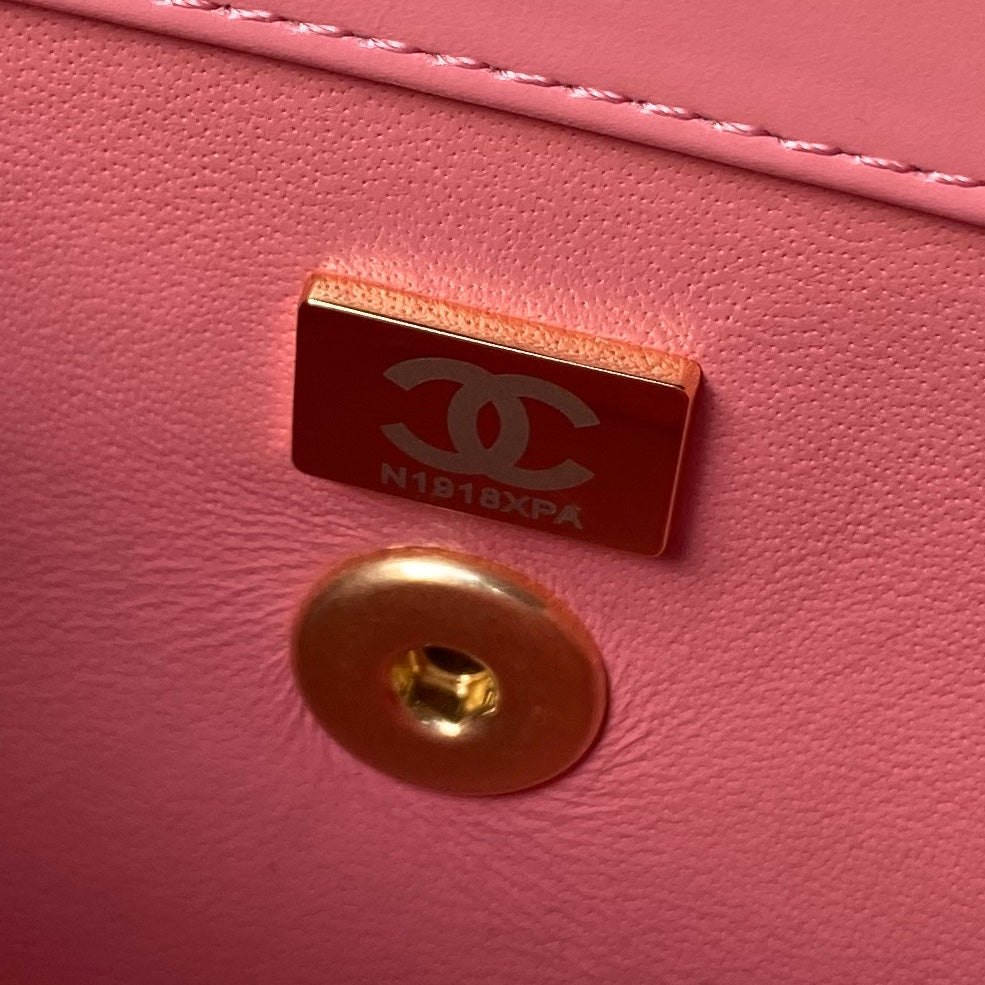 CC MINI 19 FLAP BAG IN BLUSH PINK CALFSKIN GOLD HARDWARE