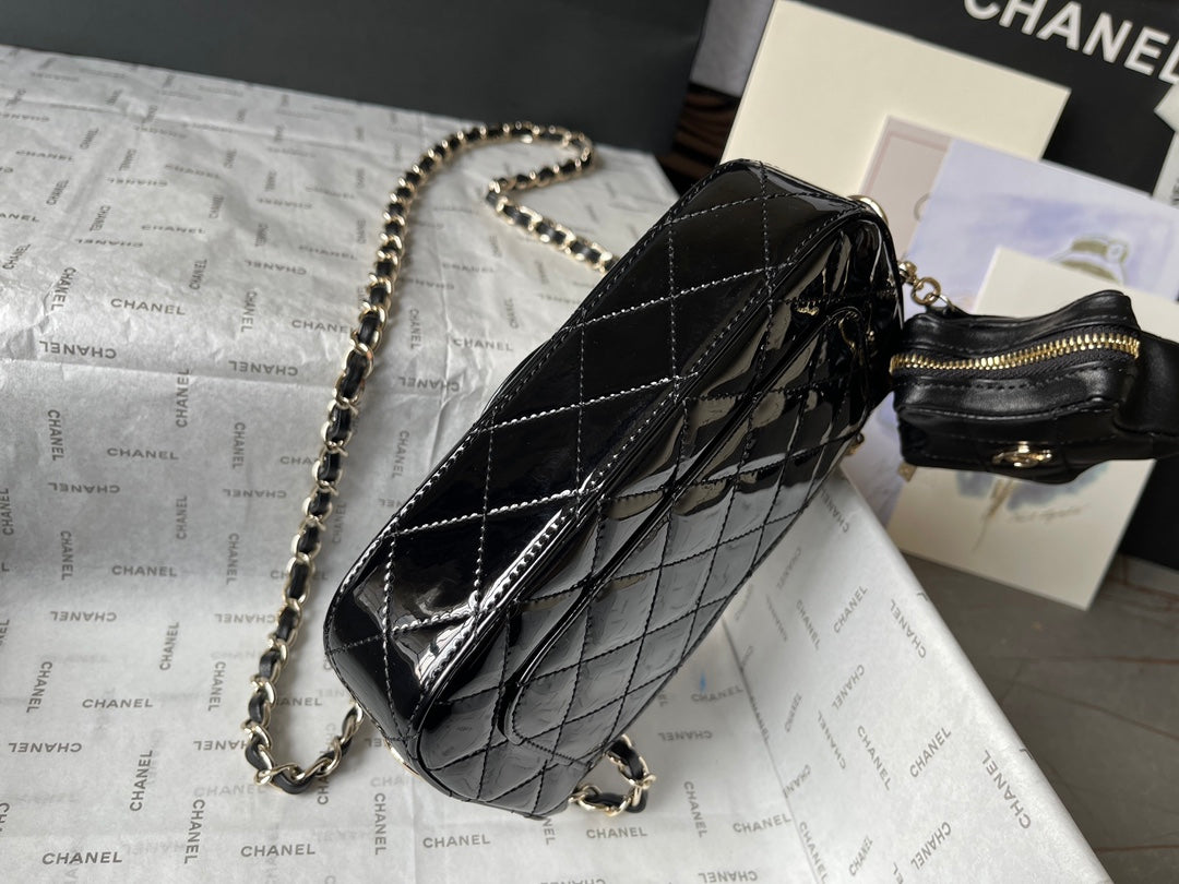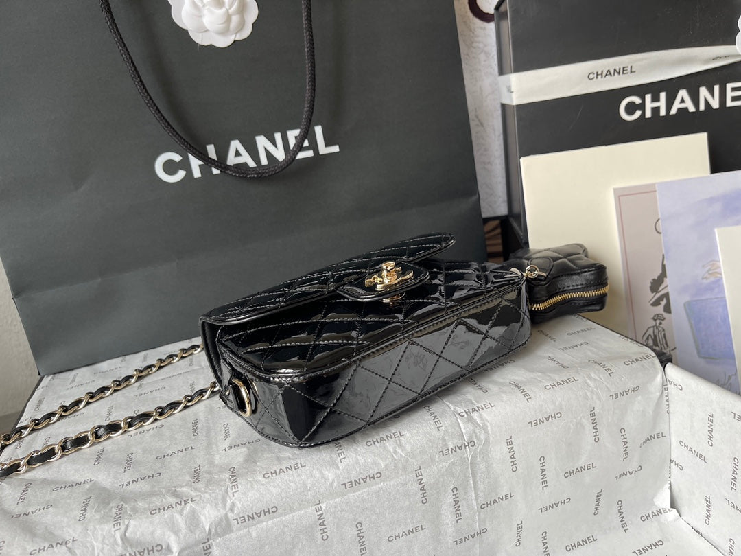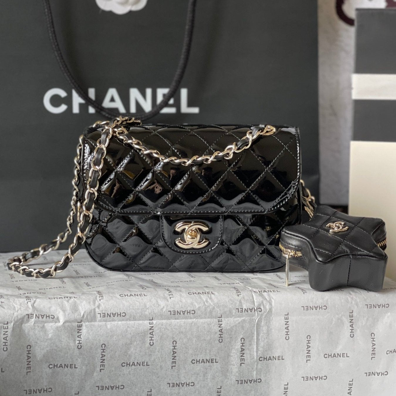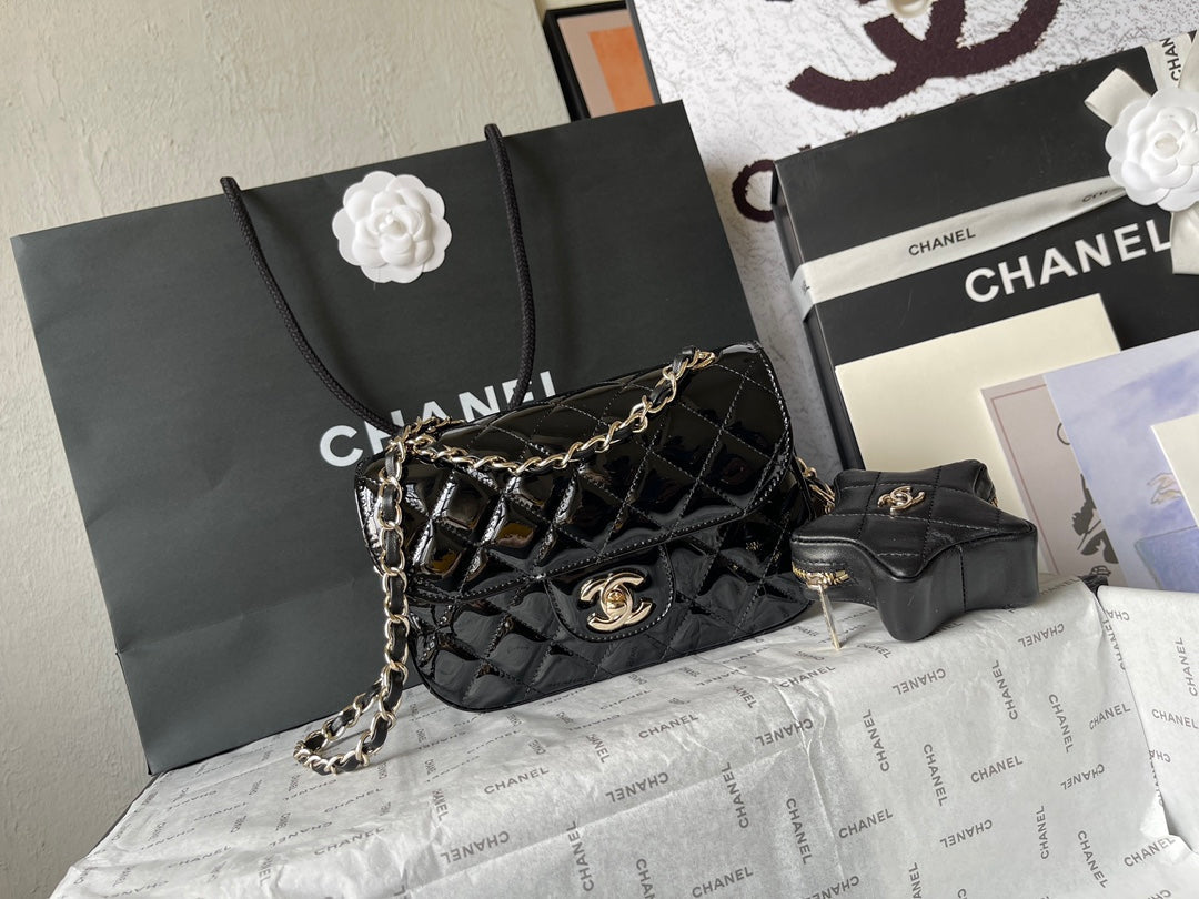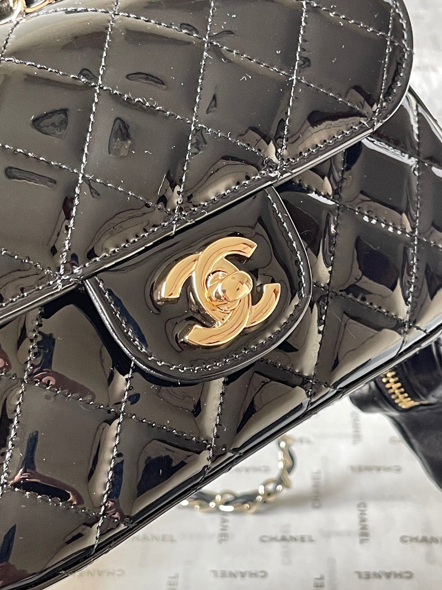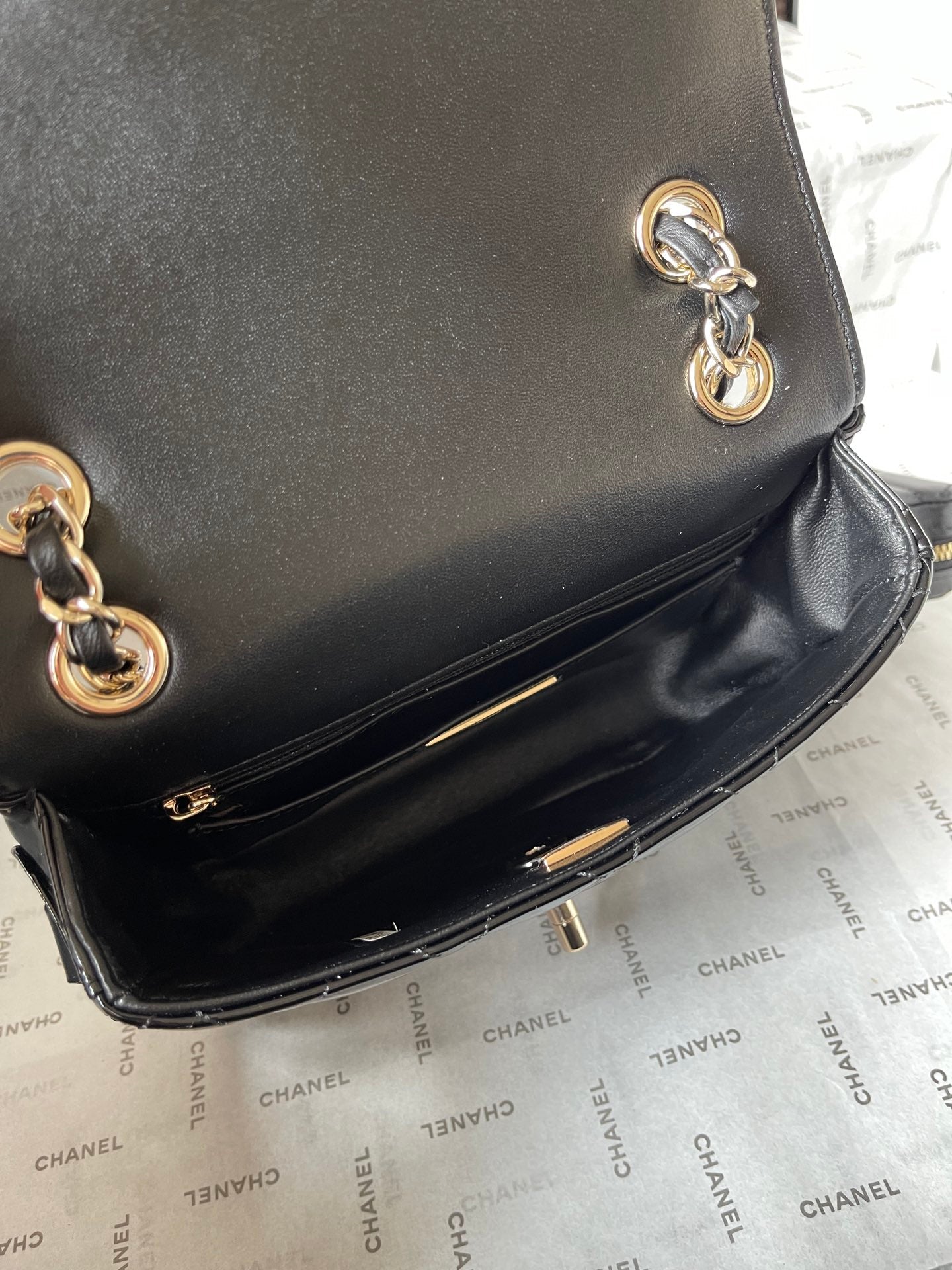 CC MINI 19 FLAP BAG IN GLOSSY BLACK METALLIC CALFSKIN