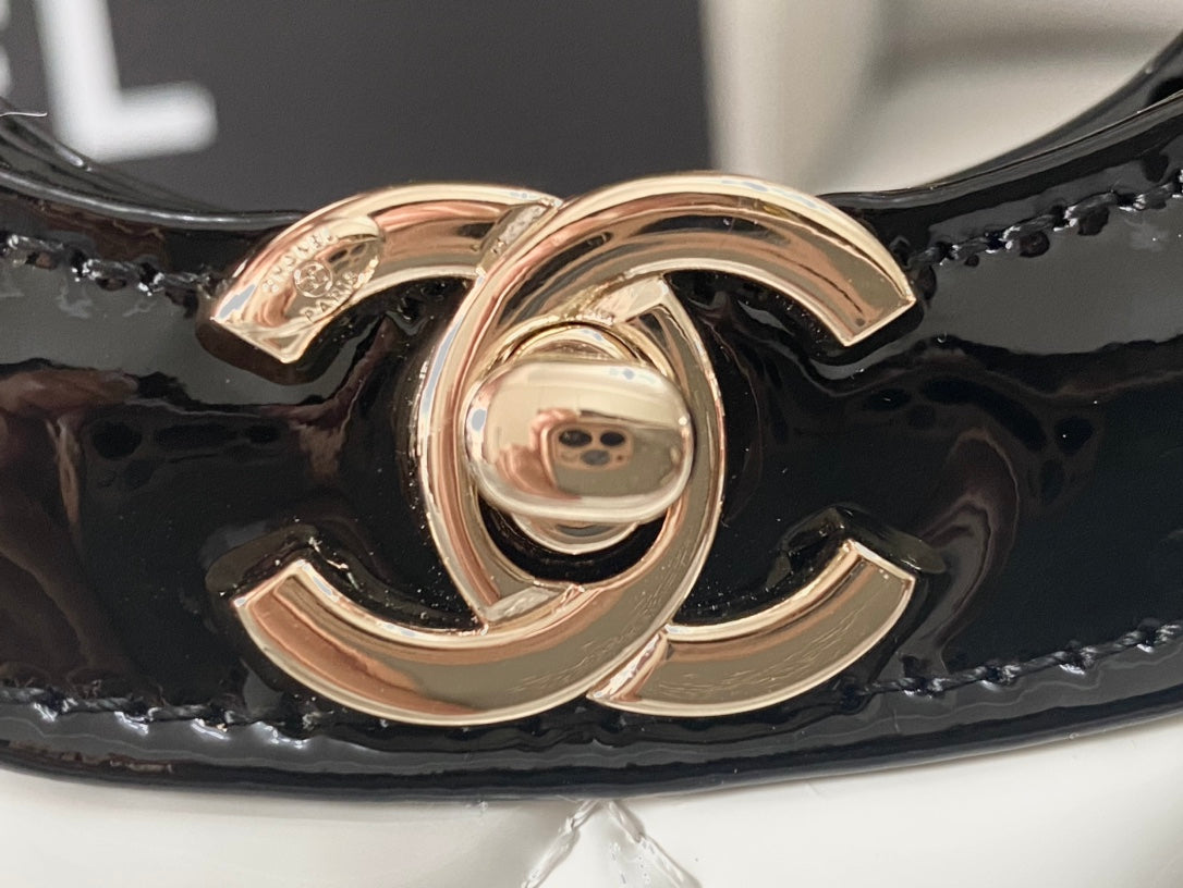 CC MINI 23 SHOPPING BAG IN GLOSSY BLACK MIX WHITE CALFSKIN