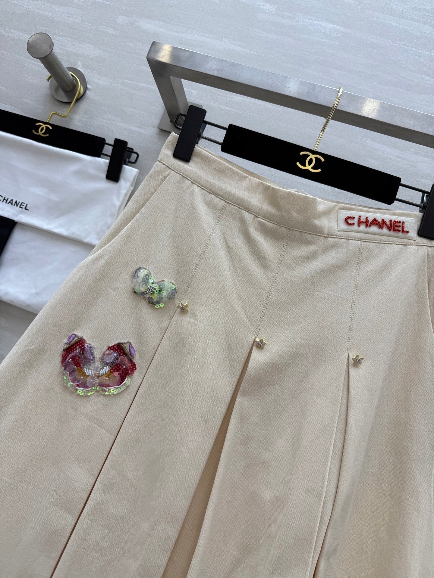 CC Pastoral Style Butterfly Skirt Beige Cotton