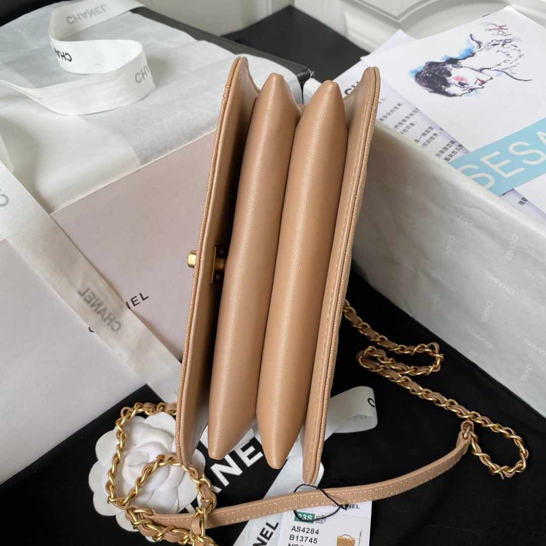 CC SMALL 20 FLAP BAG IN CAMEL BEIGE CALFSKIN GOLD HARDWARE