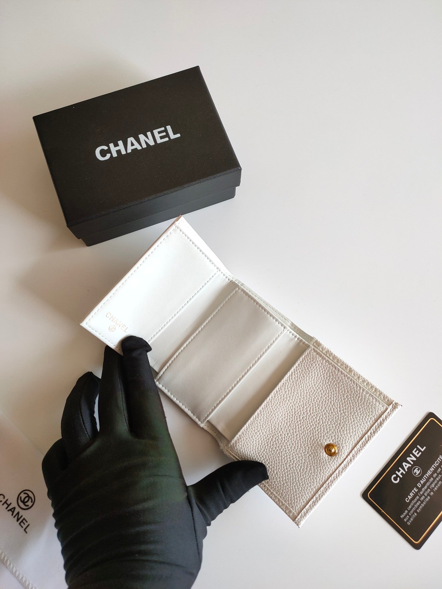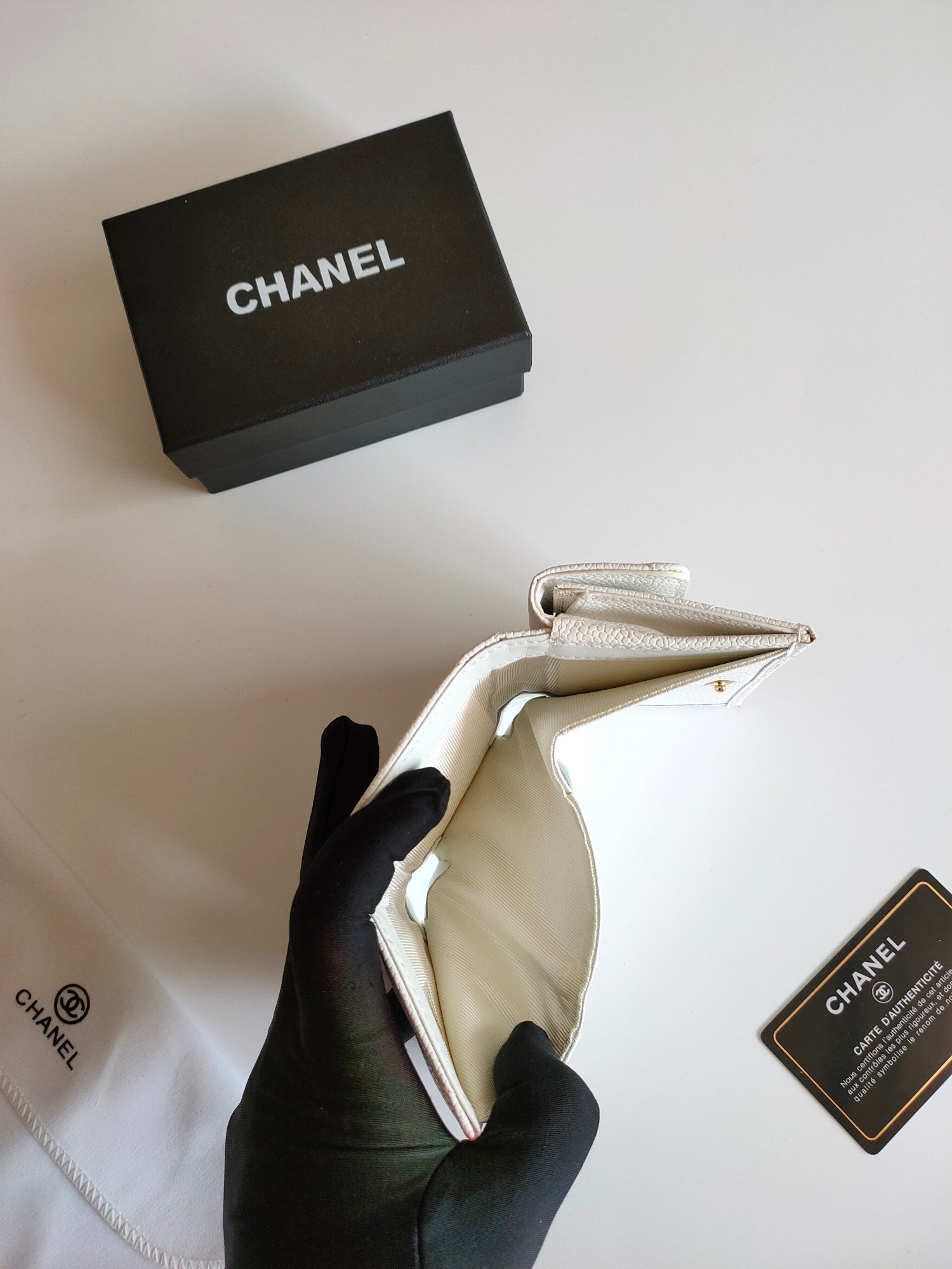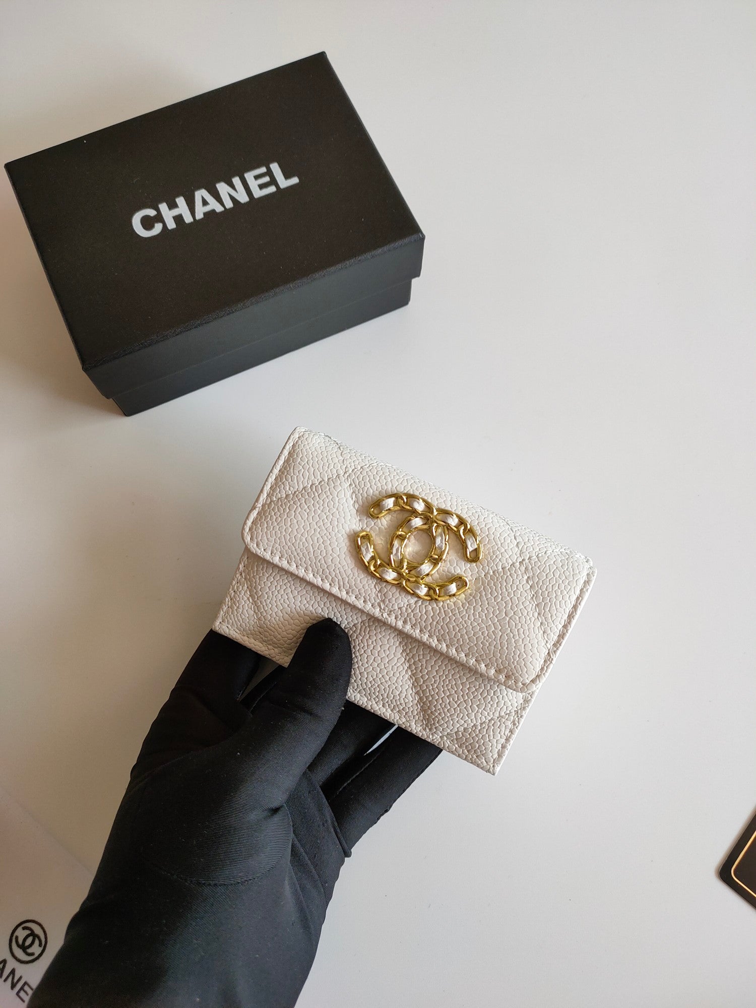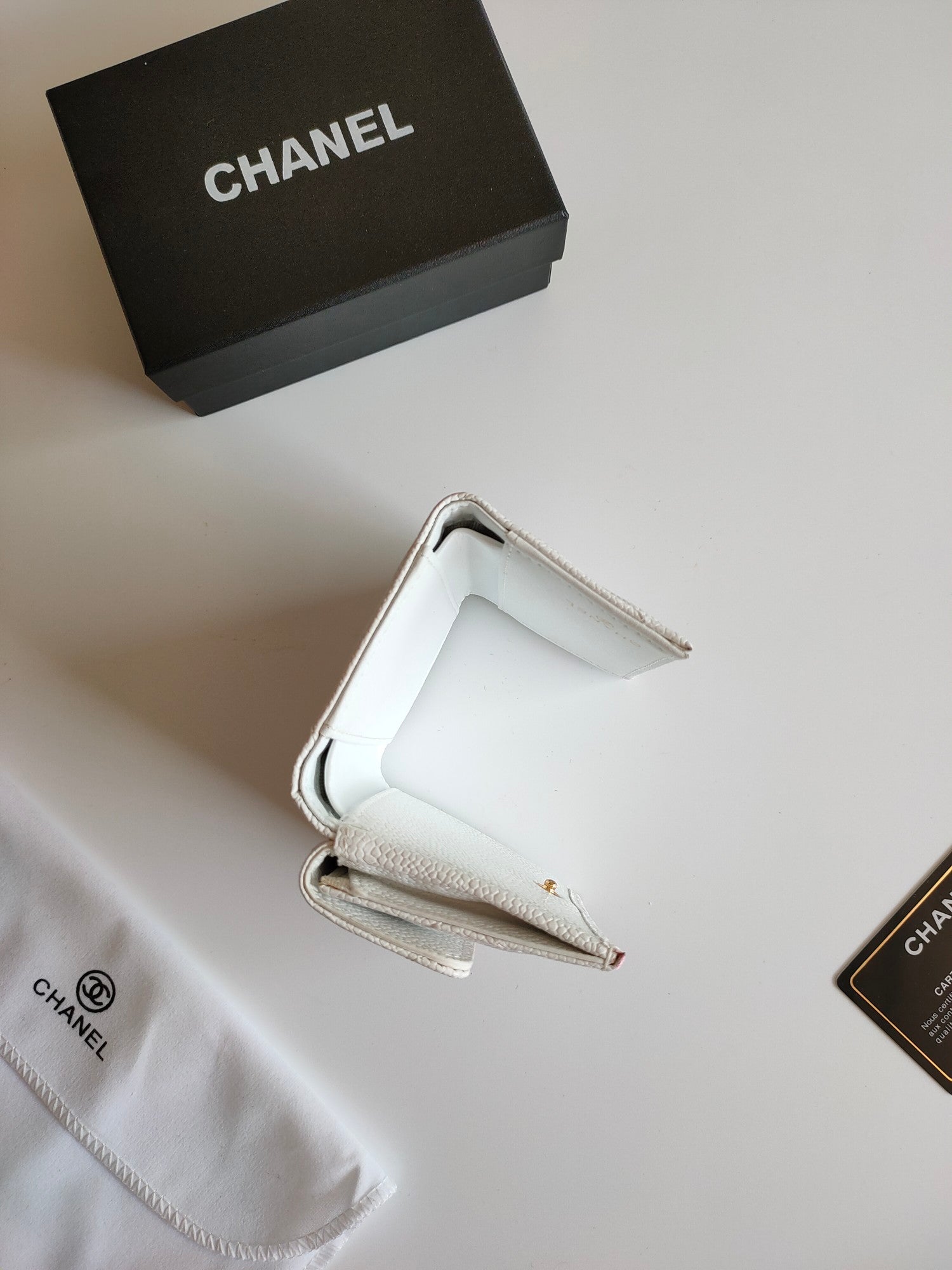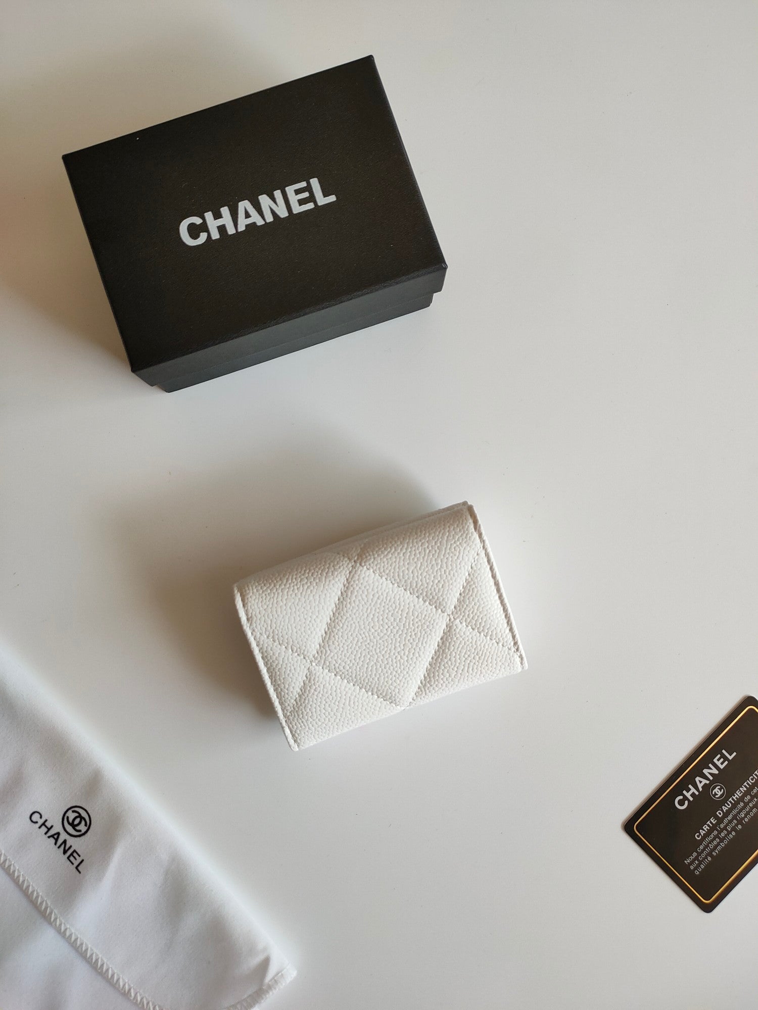 CC TRIFOLD PURSE 12 WHITE GRAINED CALFSKIN GOLD ICON