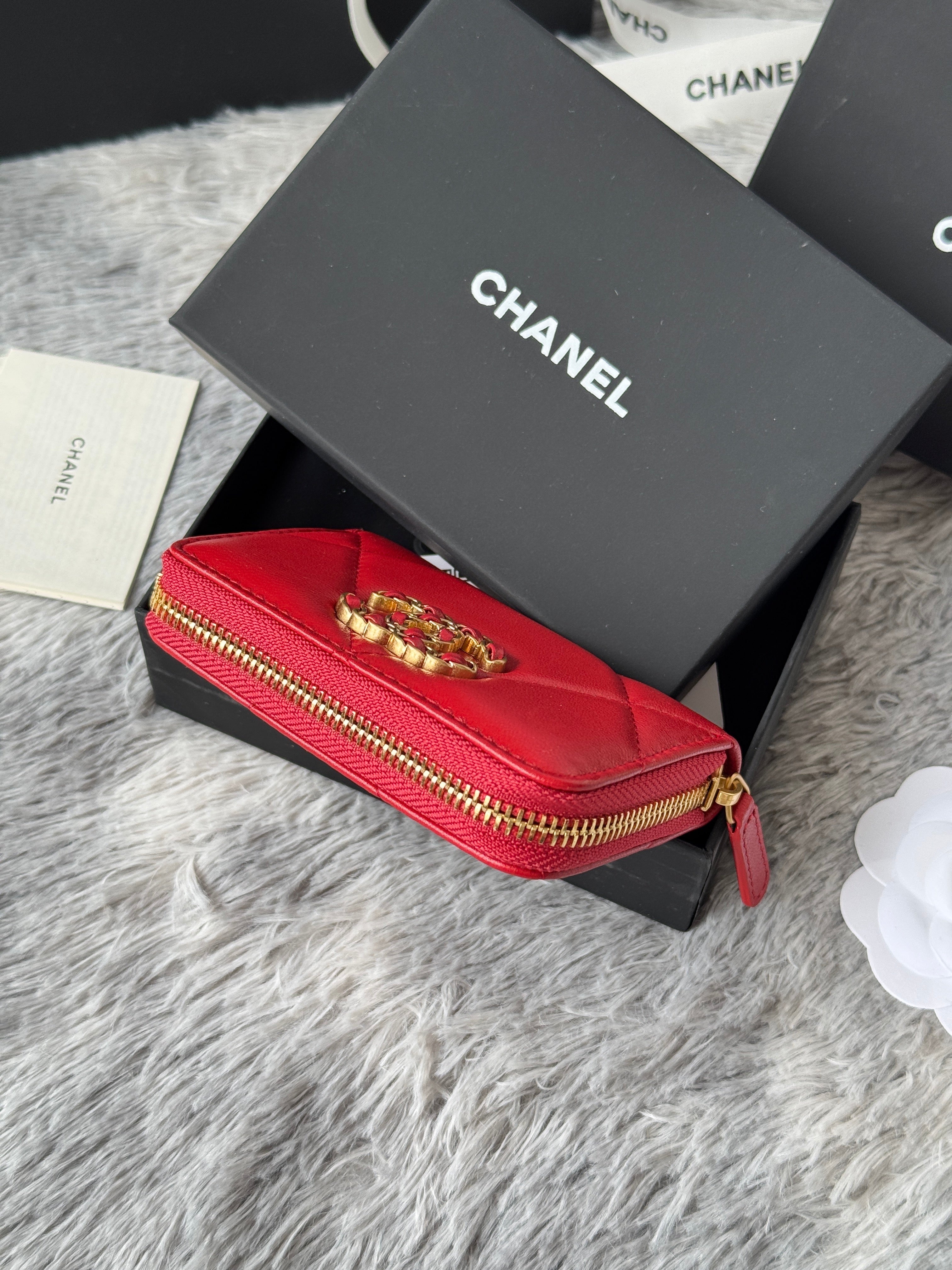 CC ZIPPED CARD HOLDER 11 IN RED LAMBSKIN GOLD-TONE METALLIC