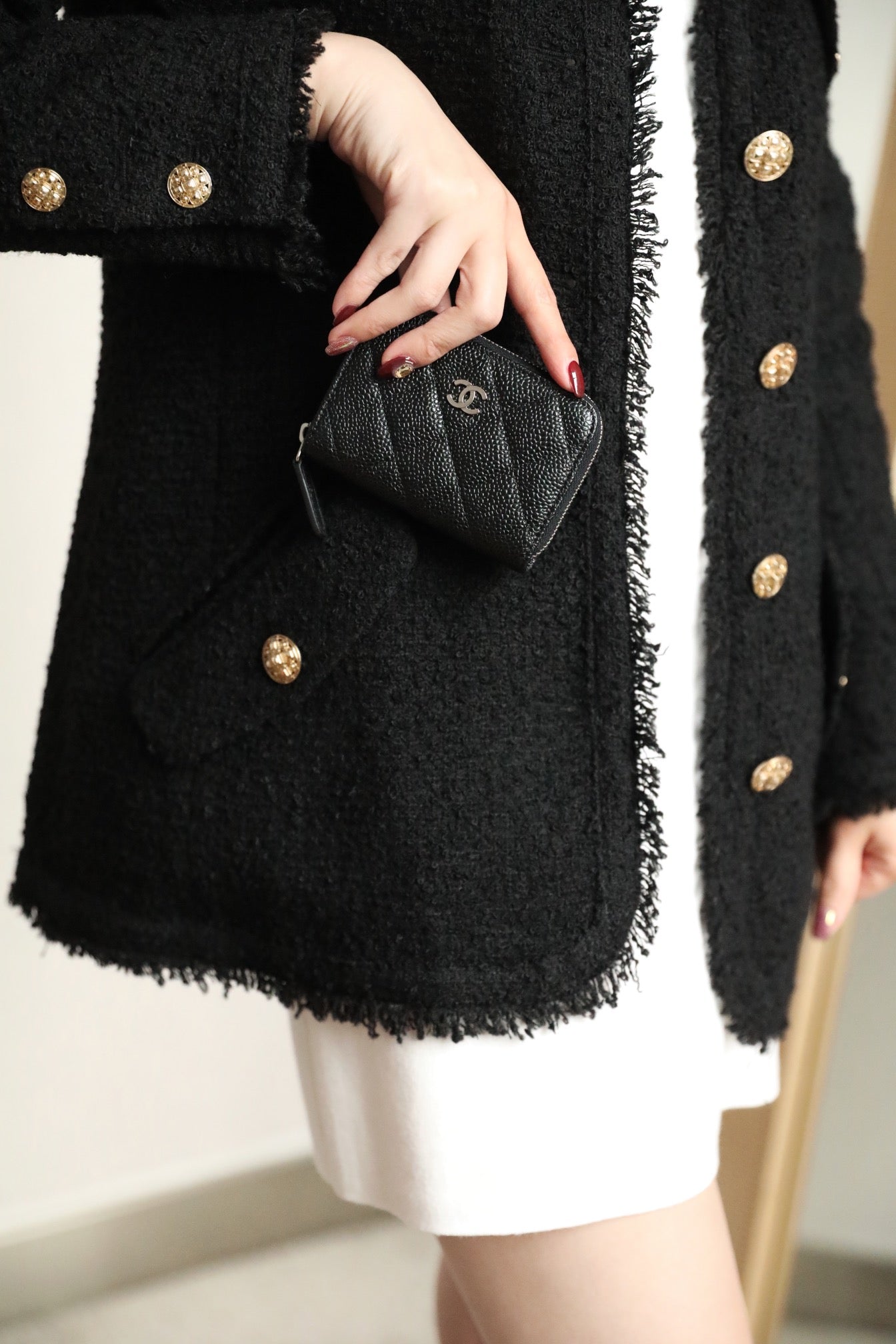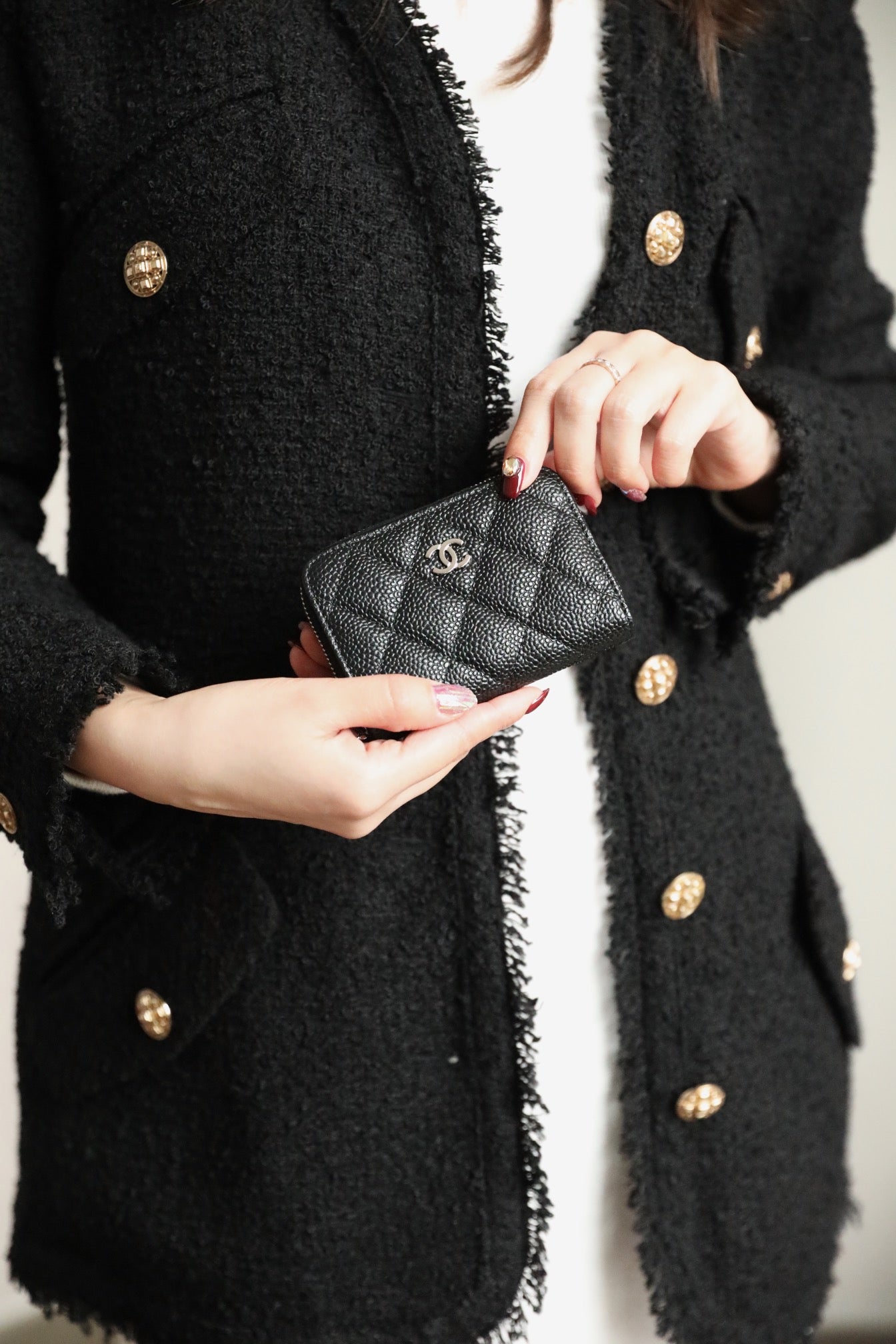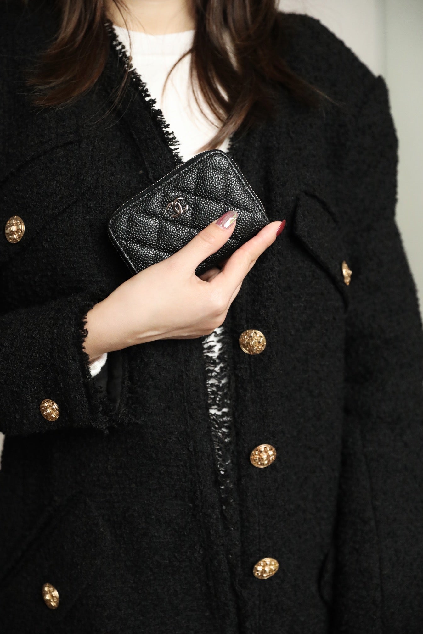 CC ZIPPED COIN BASIC PURSE 11 BLACK CALFSKIN SILVER ICON