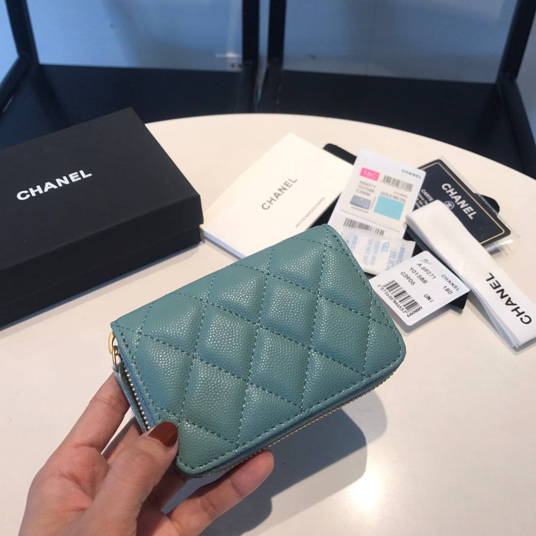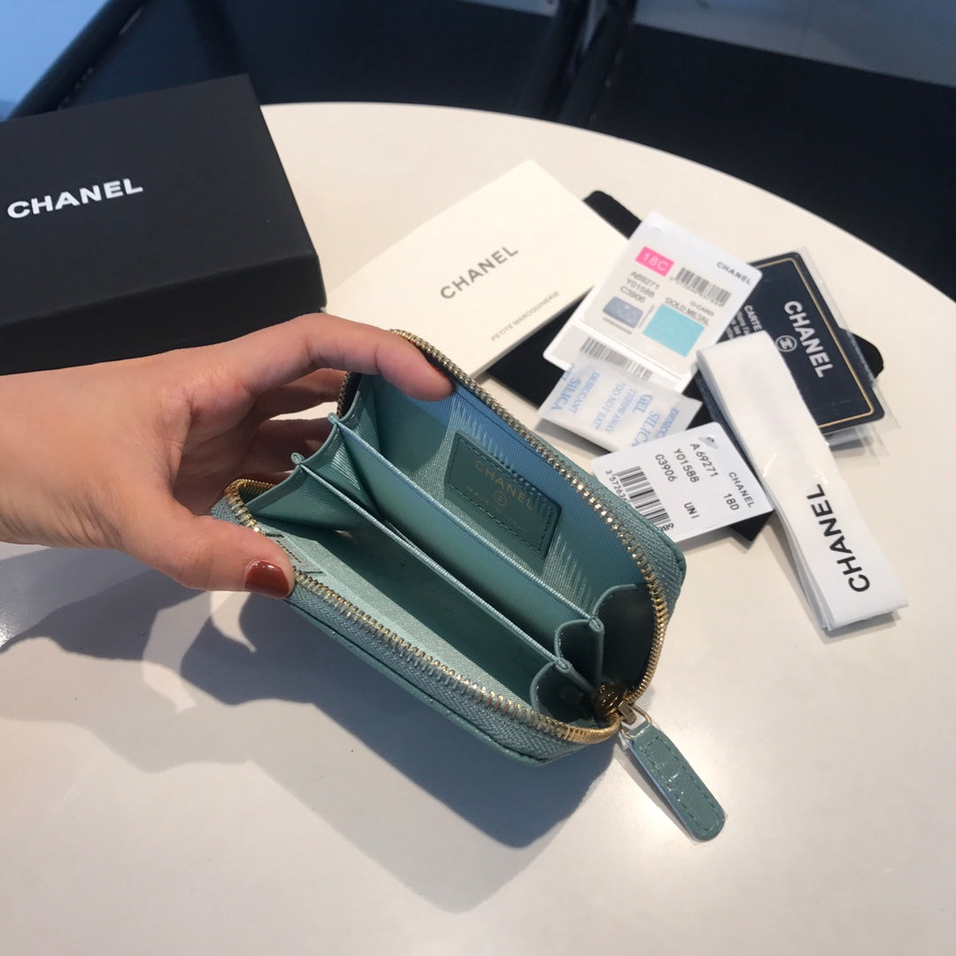 CC ZIPPED COIN BASIC PURSE 11 TEAL CALFSKIN GOLD ICON