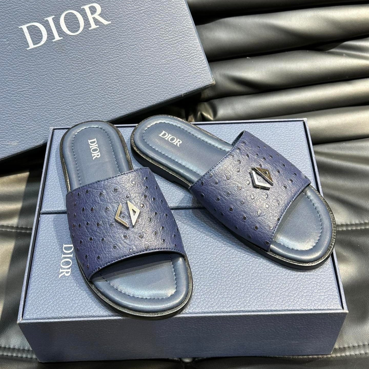 CD ALIAS SUMMER SLIPPER NAVY CALFSKIN