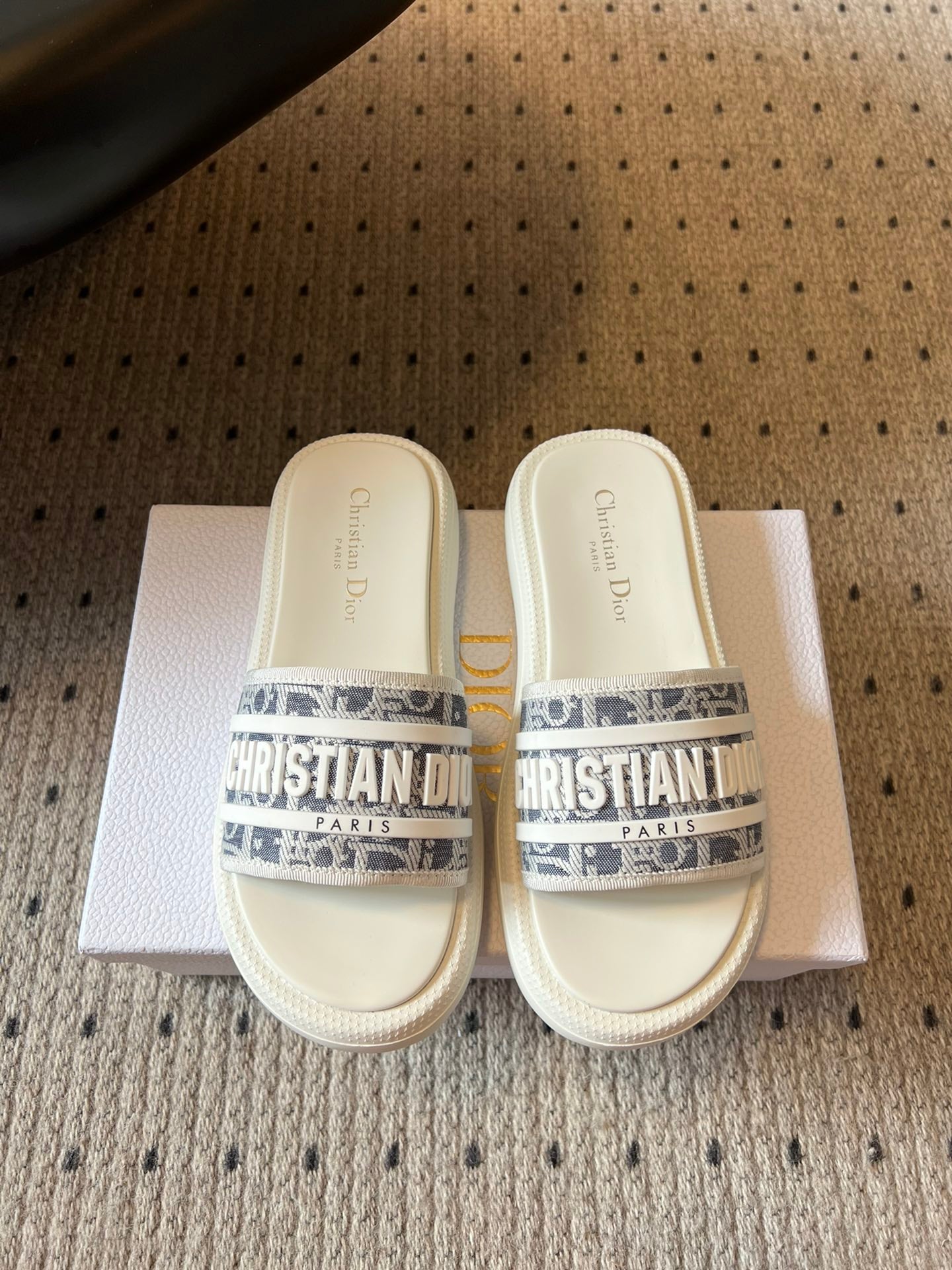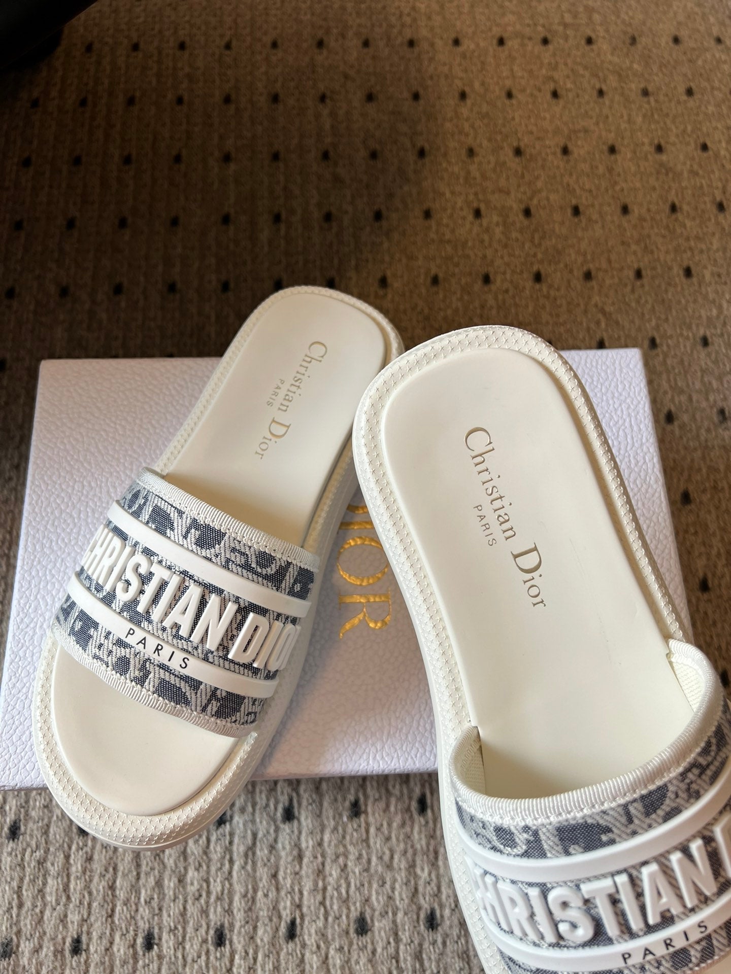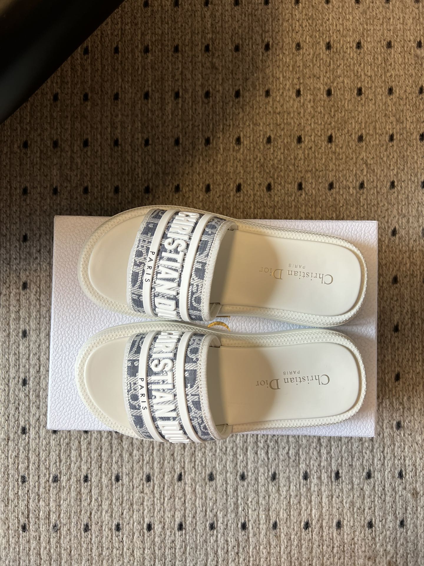 CD DWAY SLIDES WHITE RUBBER TOILE DE JOUY EMBROIDERY
