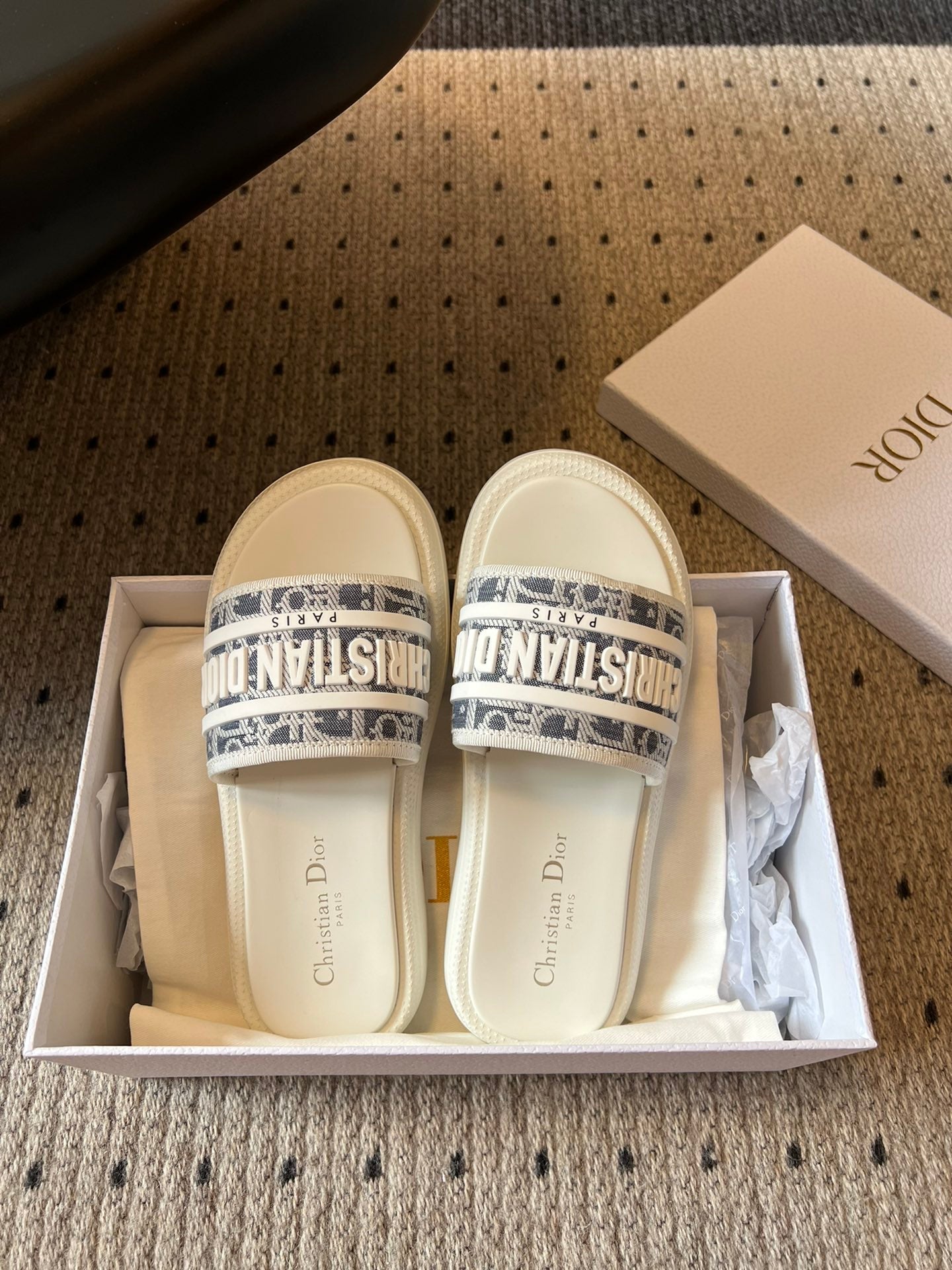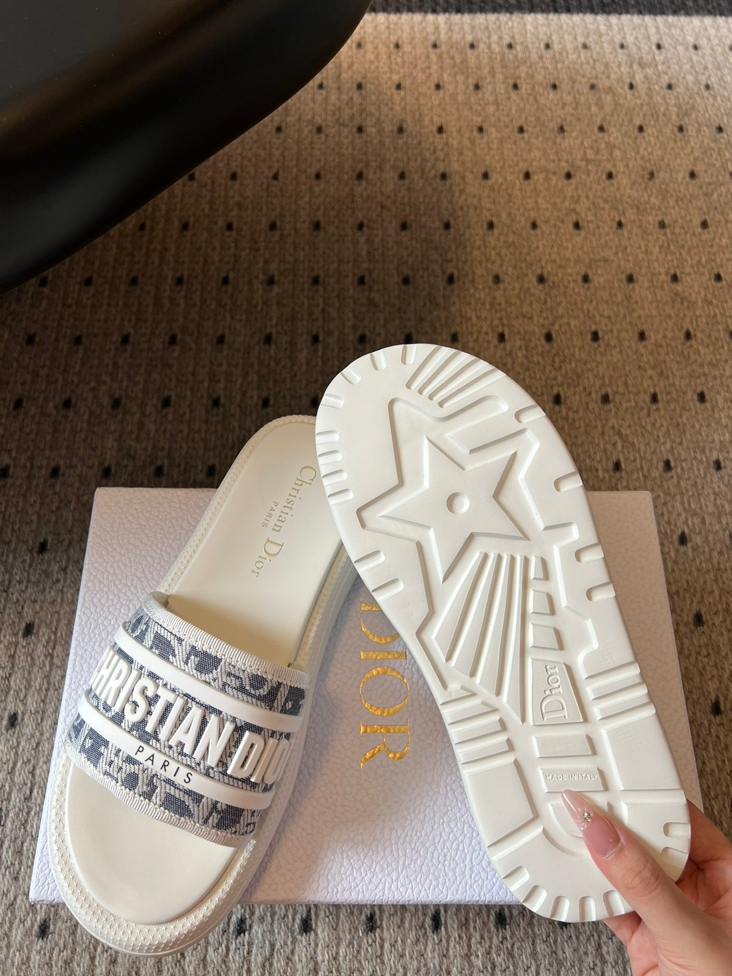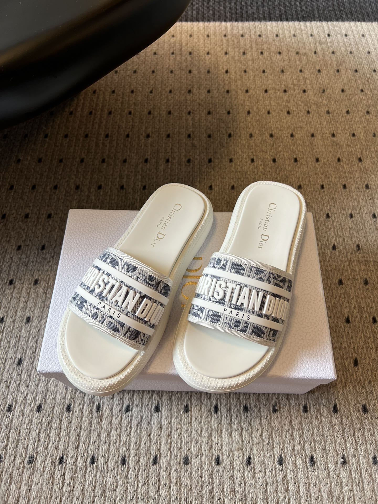 CD DWAY SLIDES WHITE RUBBER TOILE DE JOUY EMBROIDERY