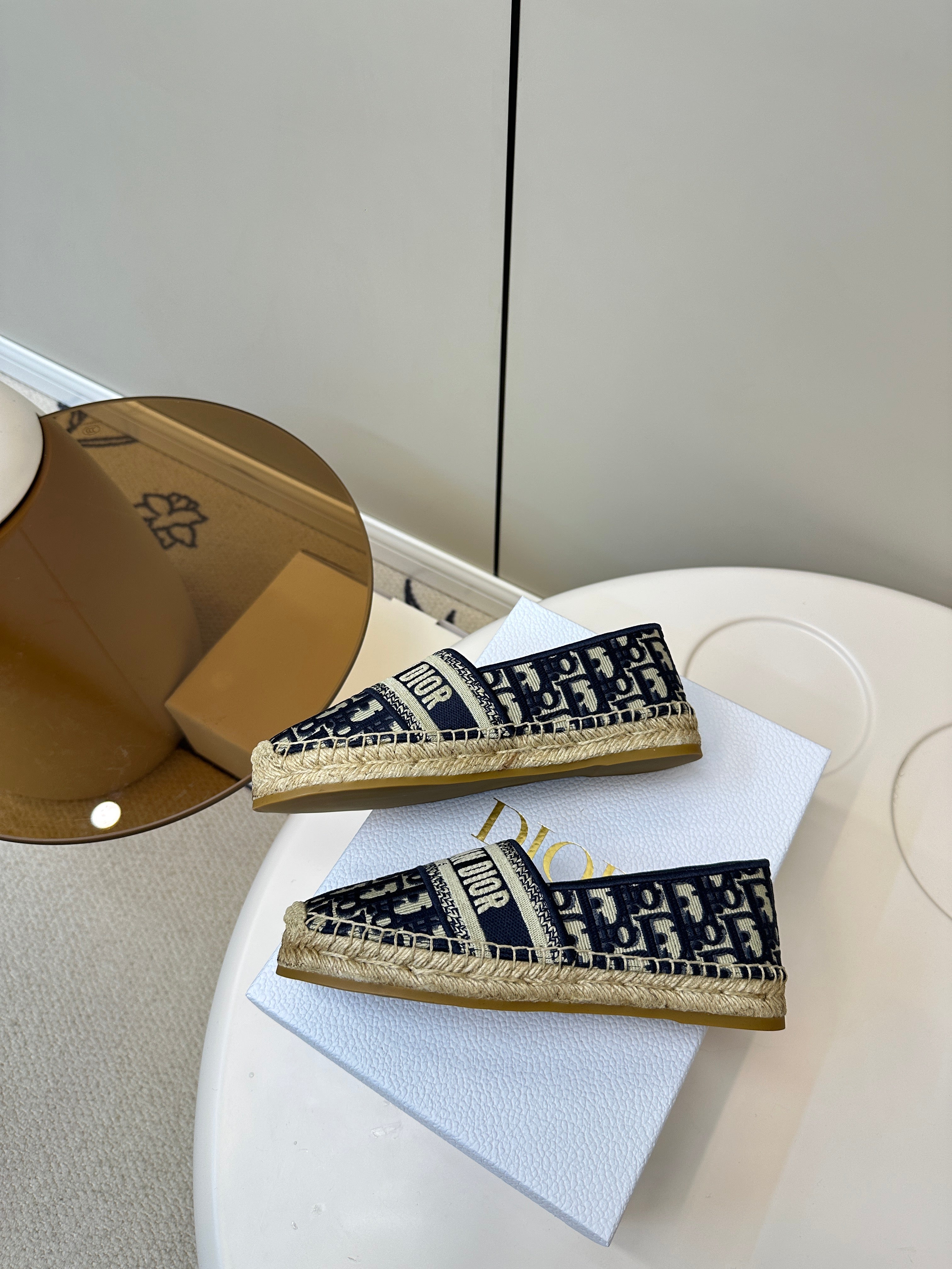 CD GRANVILLE ESPADRILLE BLUE OBLIQUE EMBROIDERED COTTON 01