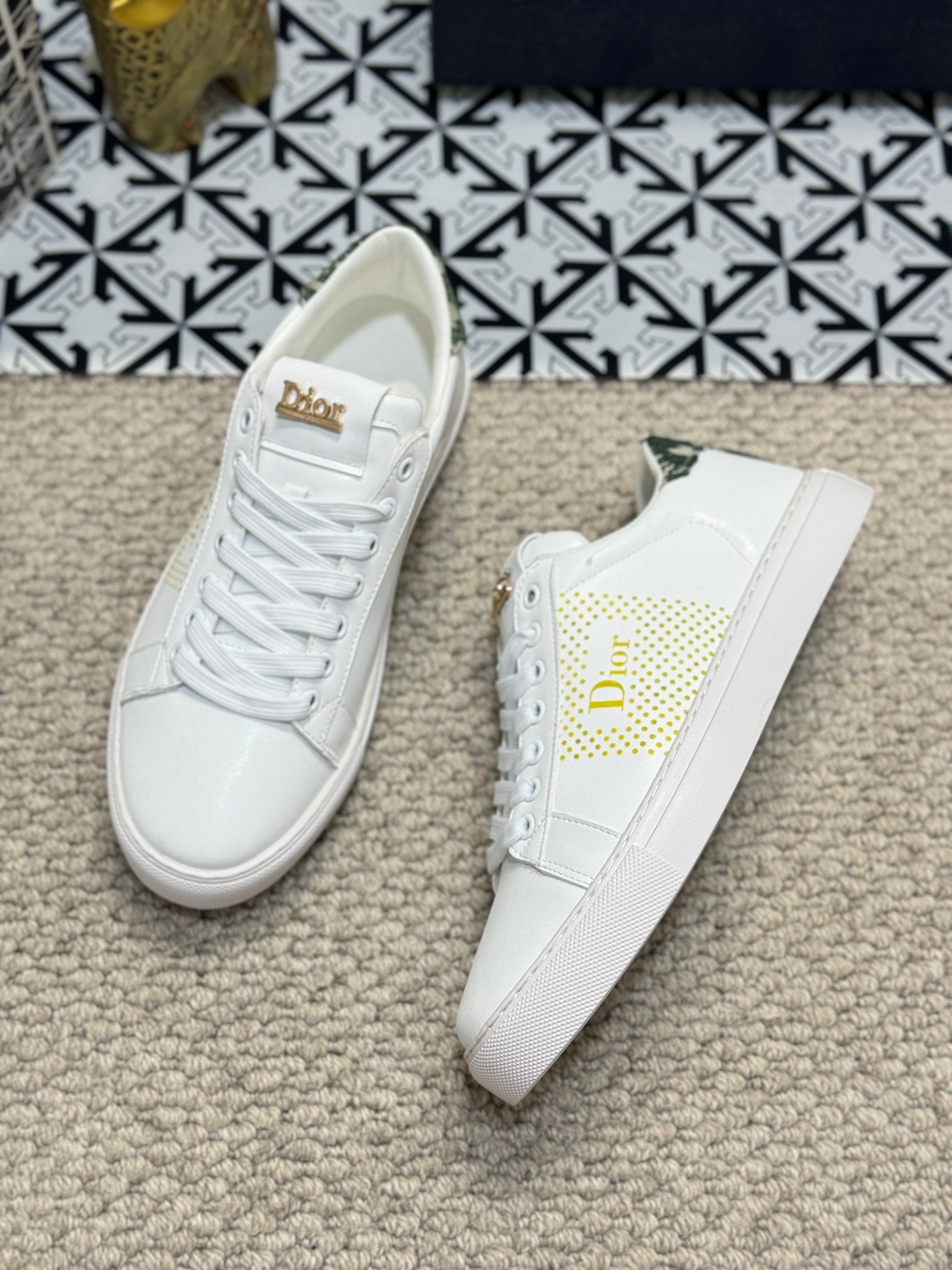 CD LOW TOP BASIC SNEAKER WHITE AND YELLOW CALFSKIN
