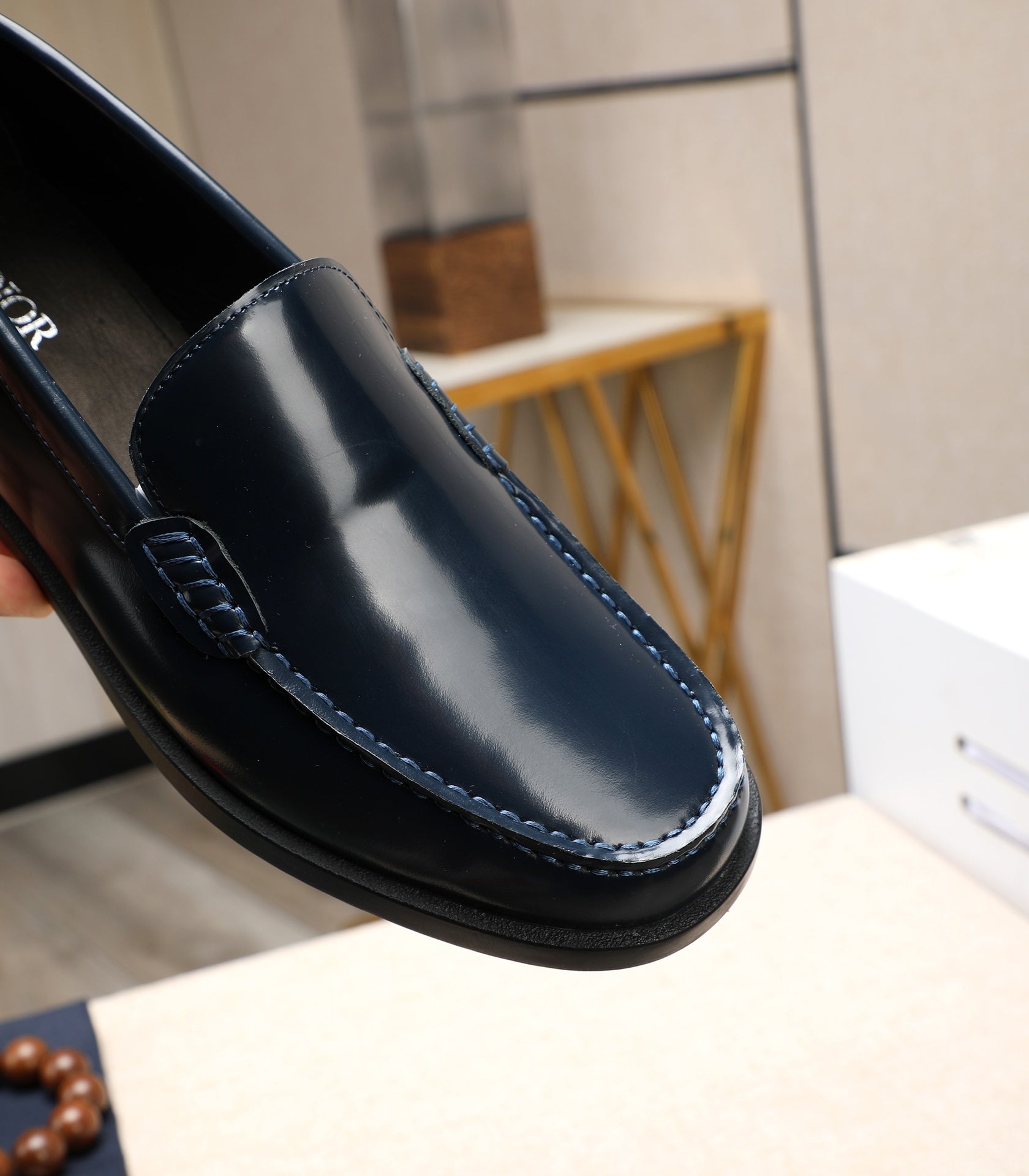CD RETRO SEWED LOAFER NAVY POLISHED CALFSKIN