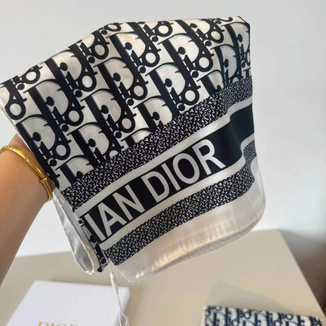 CD SCARF IN BLACK MONOGRAM PATTERN SILK