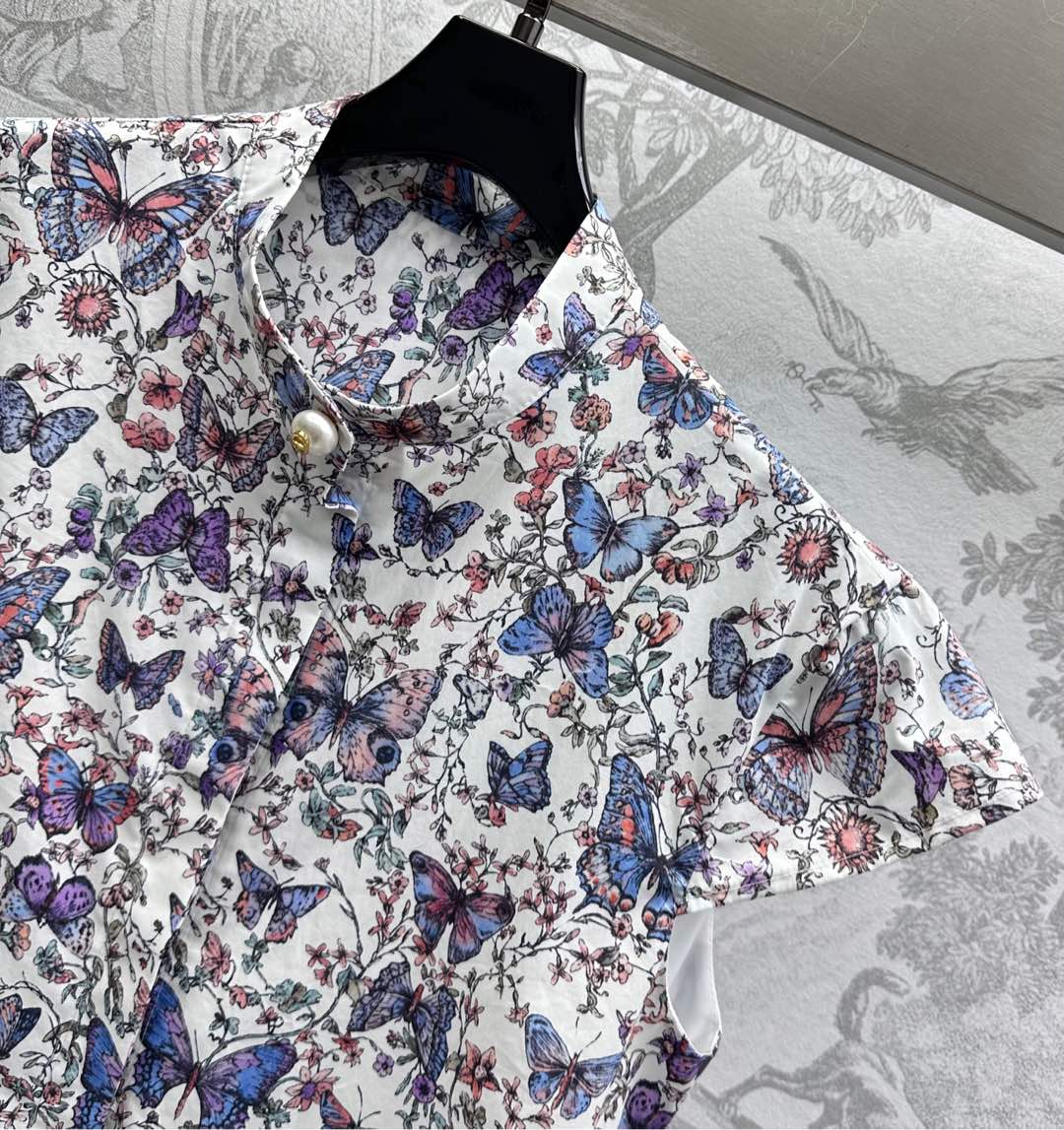 CD Short Dress White Cotton Muslin with Multicolor Motif