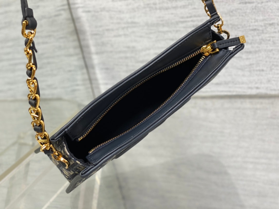 CD SIGNATURE HOBO 23.5CM BLUE OBLIQUE EMBROIDERY