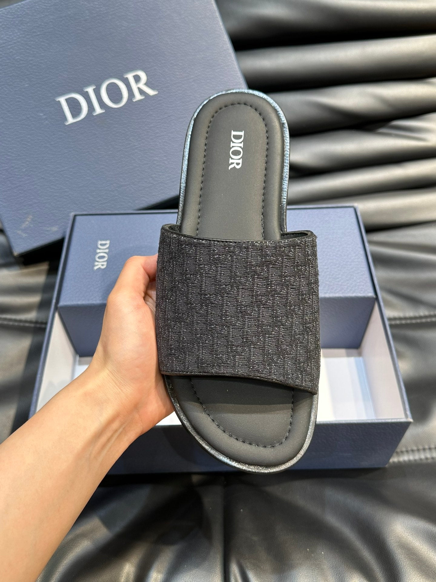 CD SLIDE ALIDAS SLIPPER BLACK JACQUARD AND SILK